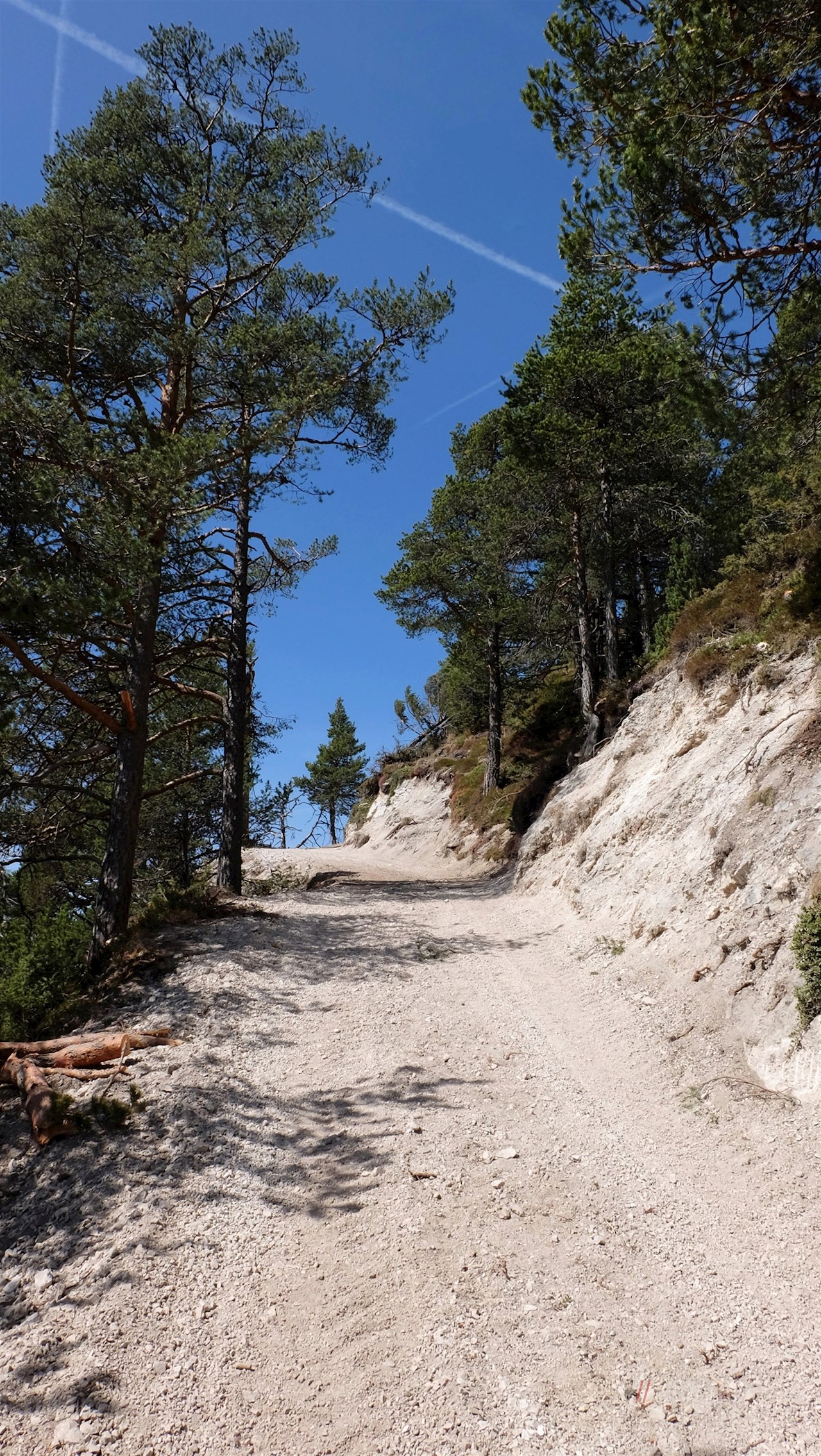 Nunmehr der Wegnummer 4 folgend, tritt der Weg in einen Wald ein, der immer wieder schöne Ausblicke auf die umliegende Bergwelt freigibt.