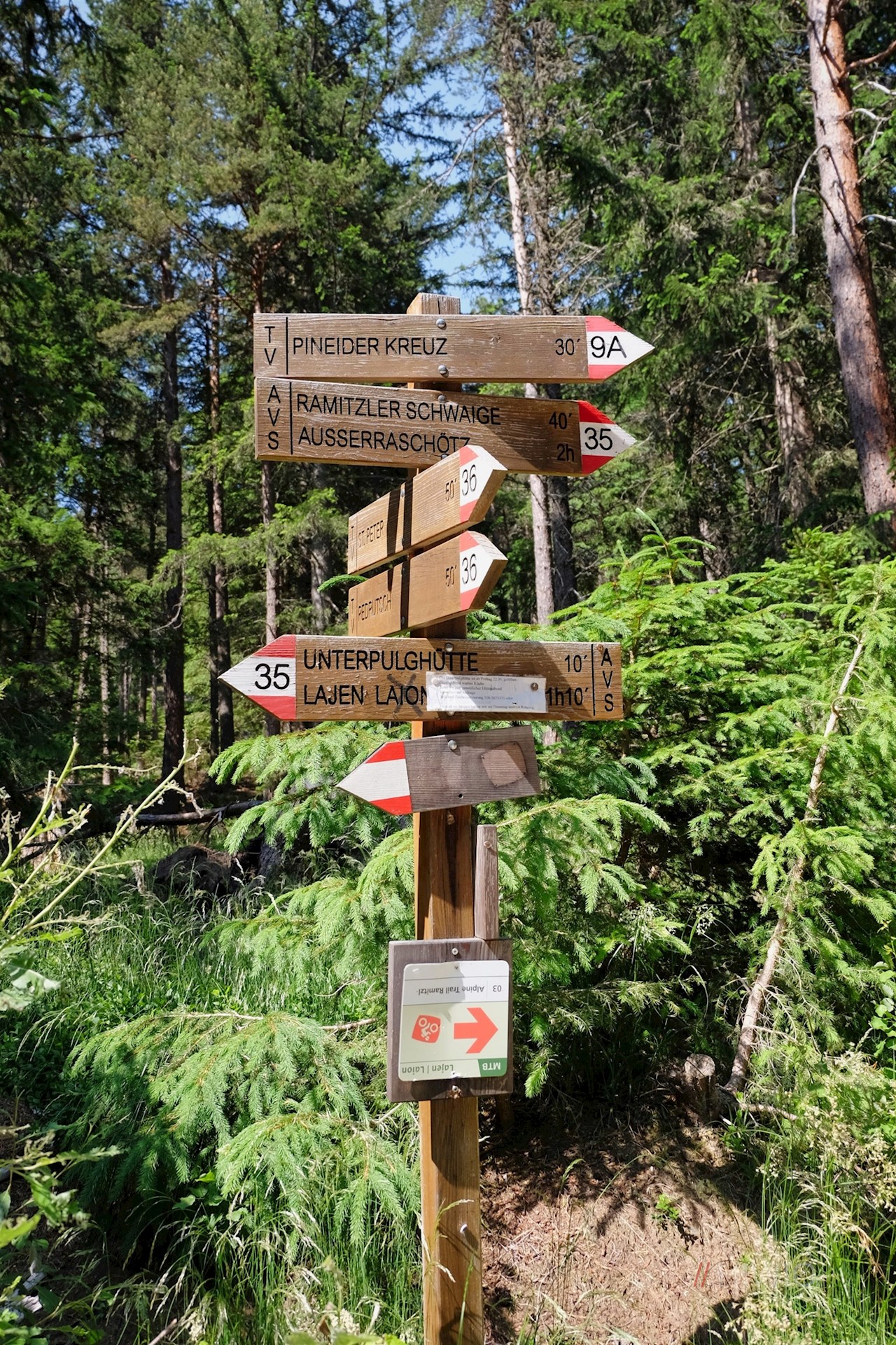 Der hier beschriebene Wanderweg zur Unterpulghütte ist auch als Mountainbiketour ausgeschildert.