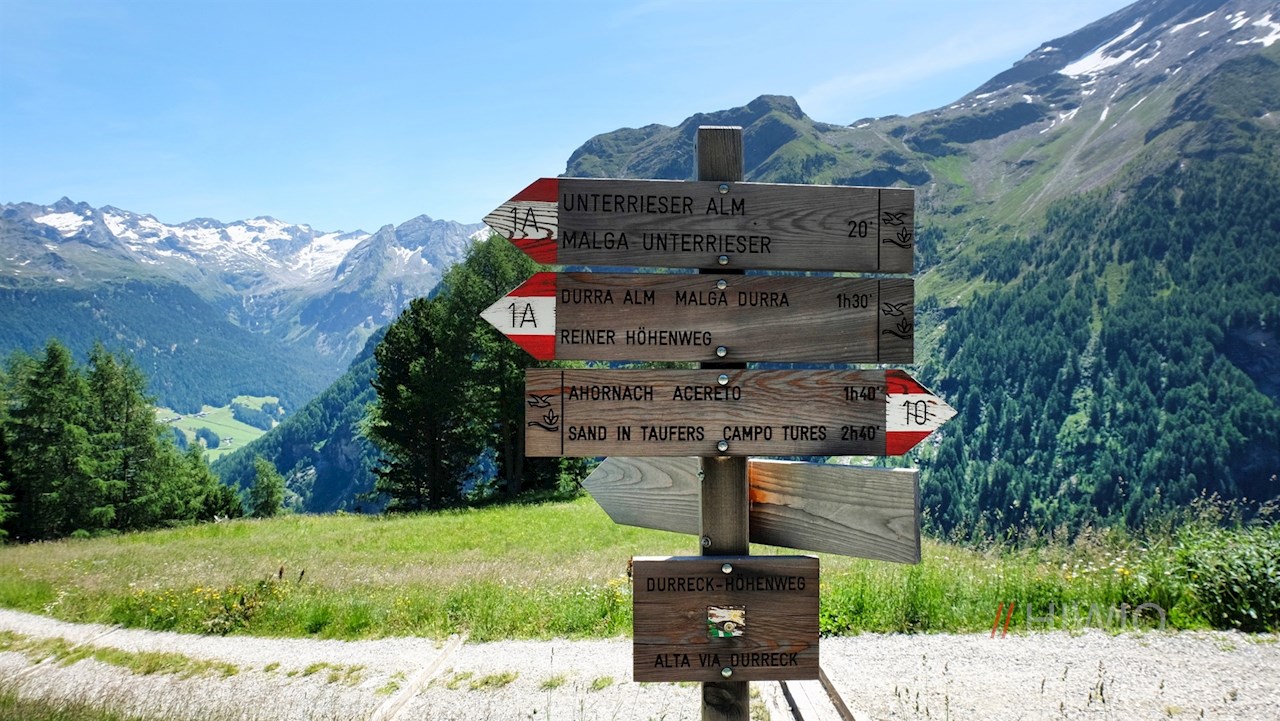 Die Wanderung zur Unterrieseralm nimmt im Dorfzentrum des idyllischen Bergdorfes Rein in Taufers ihren Anfang. Oberhalb der Kirche finden sich eventuell einige Parkmöglichkeiten.