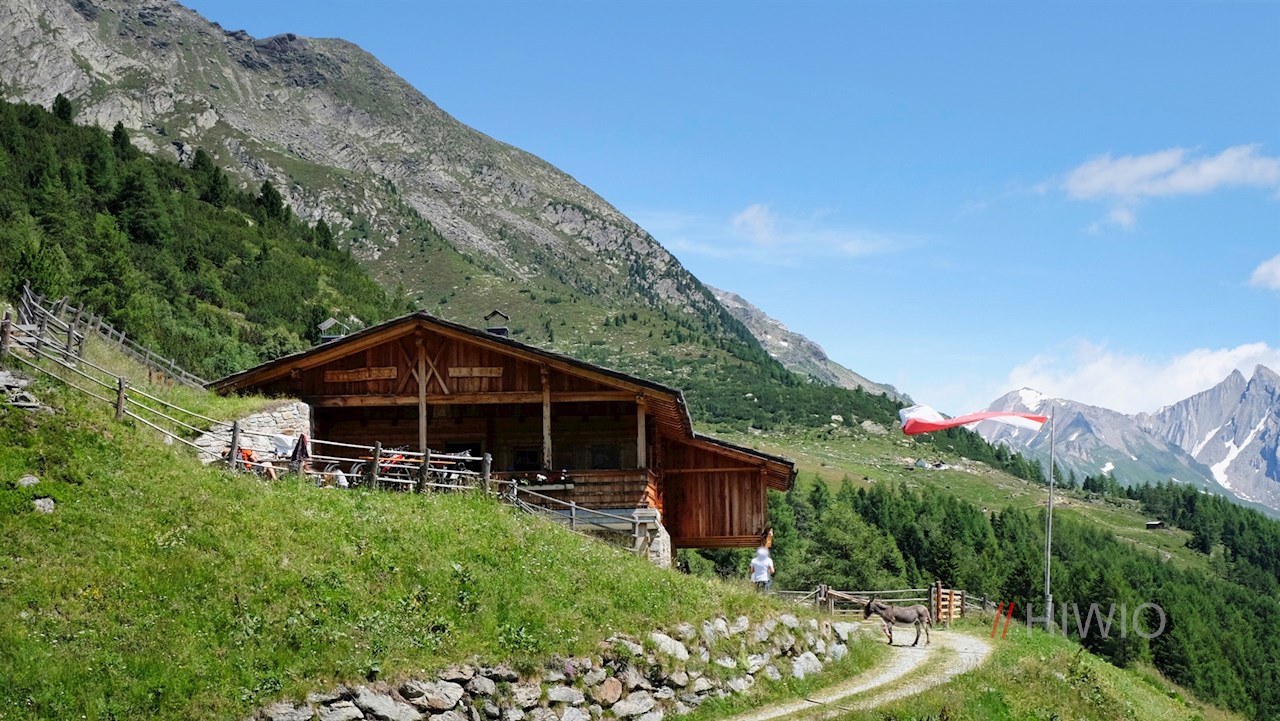 Von Rein in Taufers führt eine leichte Wanderung zum einladenden Almschank Unterrieseralm oberhalb der „Lobisa Schupfn“.