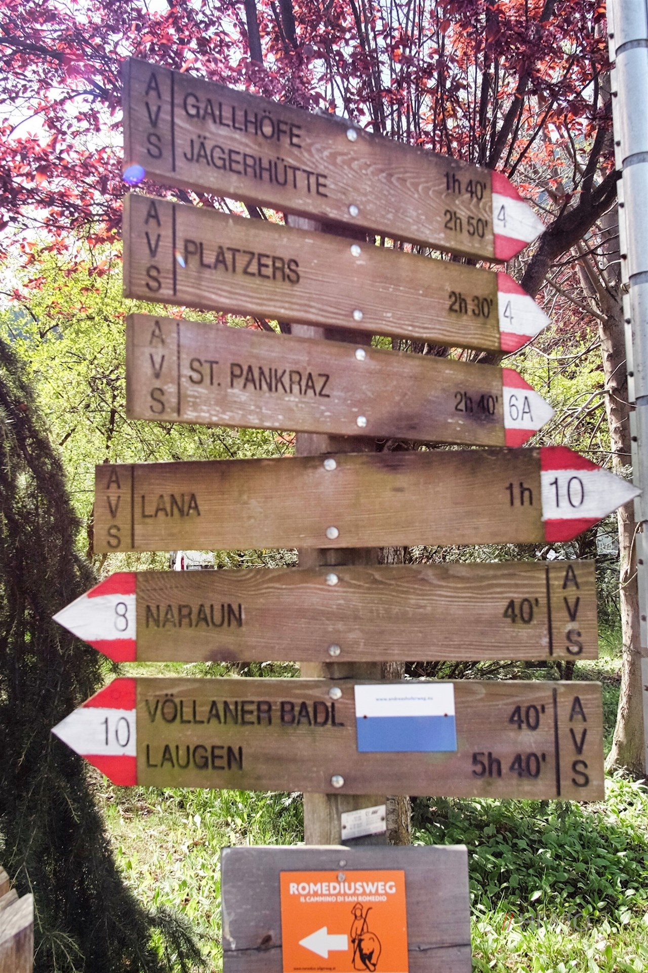 Die Wanderung zum Völlaner Badl nimmt am südlichen Dorfrand des beschaulichen Luftkurortes Völlan oberhalb von Lana ihren Anfang, wo sich mehrere Parkmöglichkeiten finden.