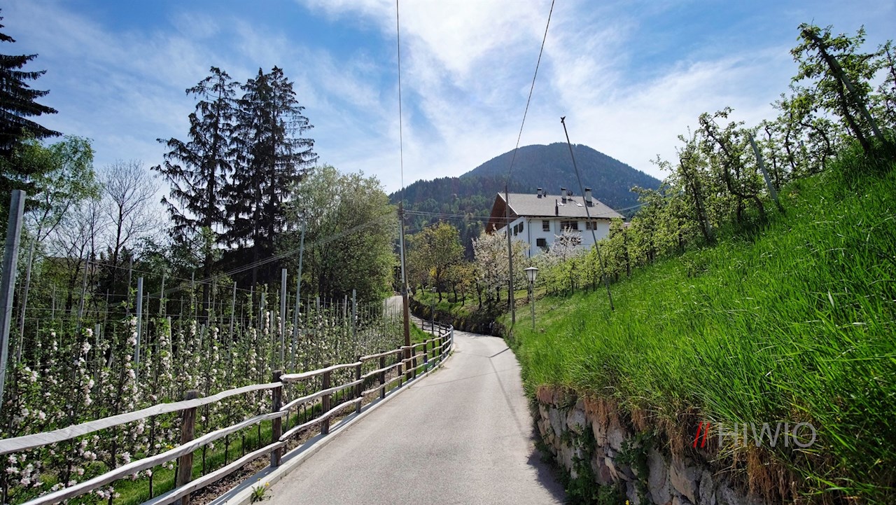 Der Beschilderung Nr. 10 in Richtung Völlaner Badl folgend, steigt der Wanderweg zunächst über ein geteertes, von malerischen Obstwiesen umsäumtes Sträßchen an.