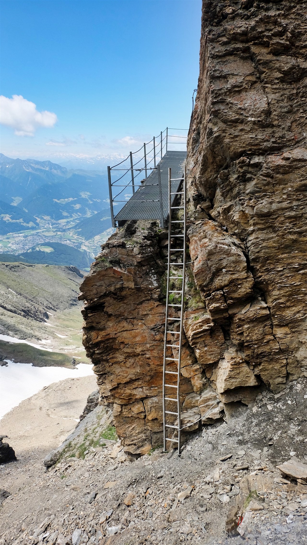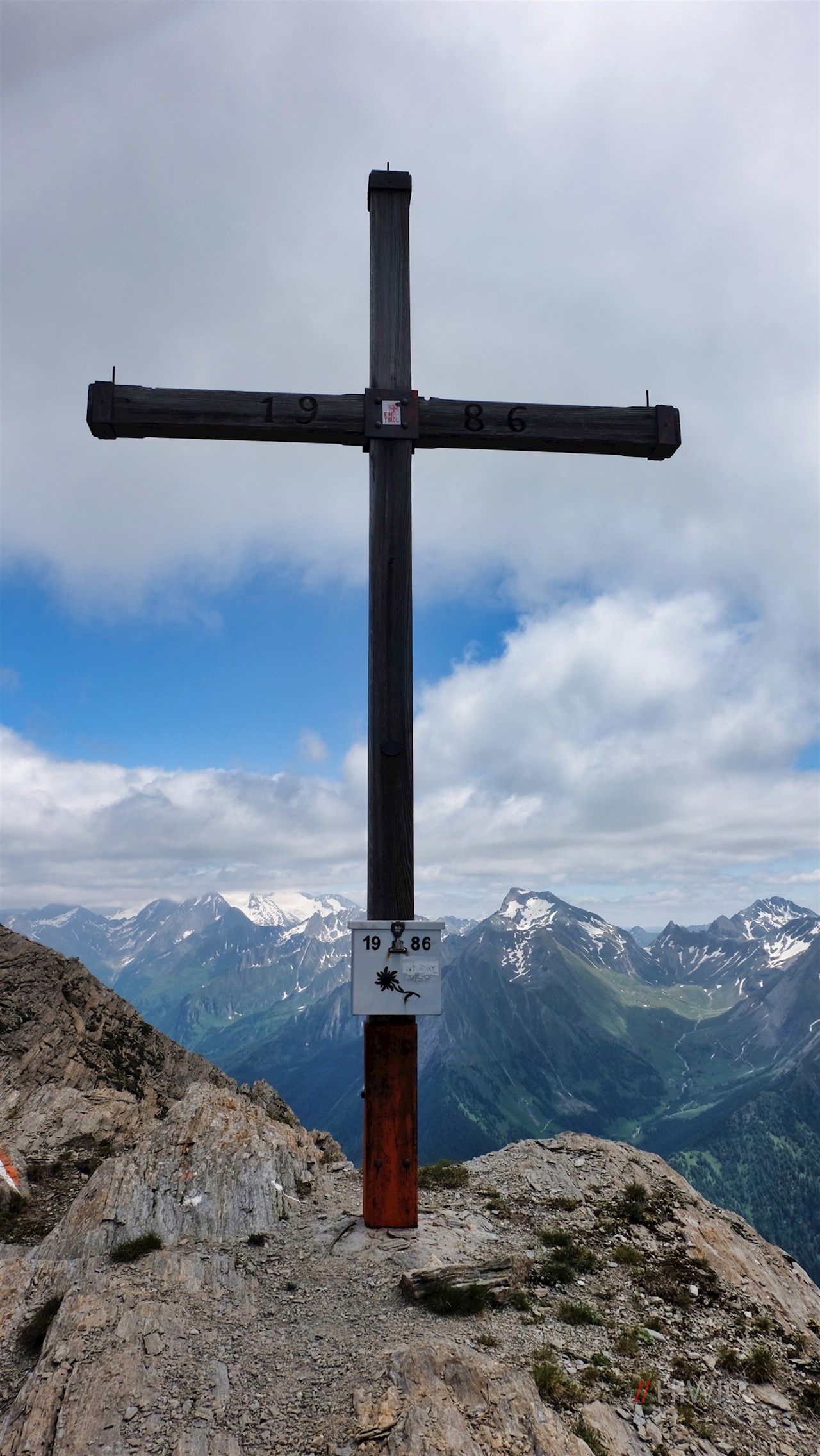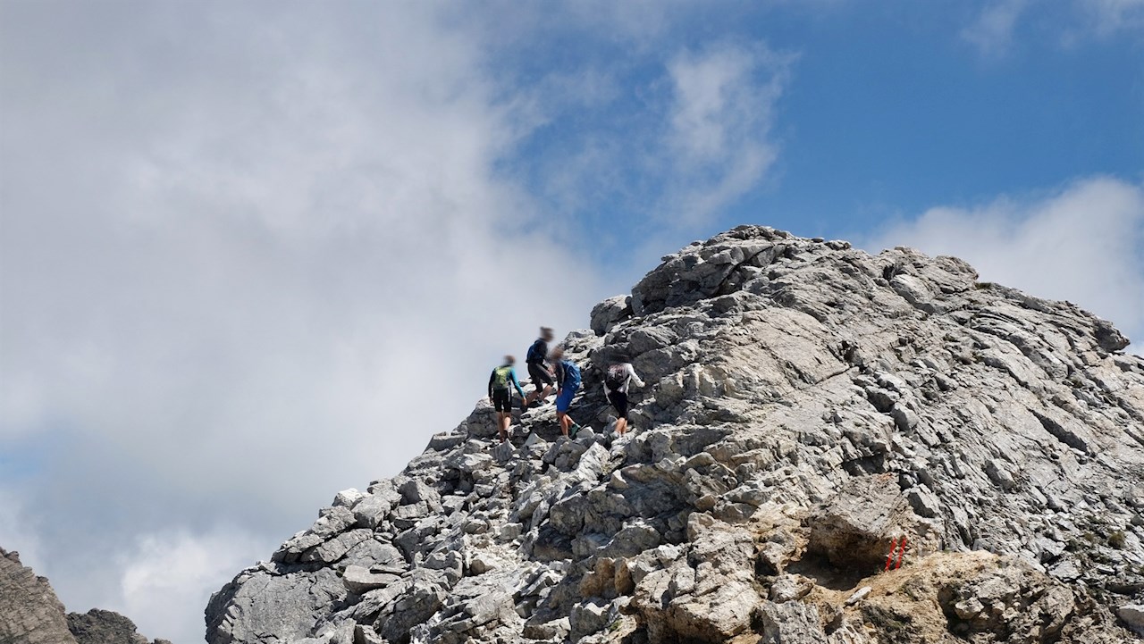 Nun ist die Rollspitze nicht mehr fern, die man auf durchwegs ausgesetzten Wegen erklimmt. Am Gipfelkreuz wird man dafür mit einem wahrlich malerischen Ausblick auf die Stubaier Alpen, die Zillertaler Alpen, das Karwendel und die Dolomiten belohnt. Sogar die Ortlergruppe ist in der Ferne auszumachen.