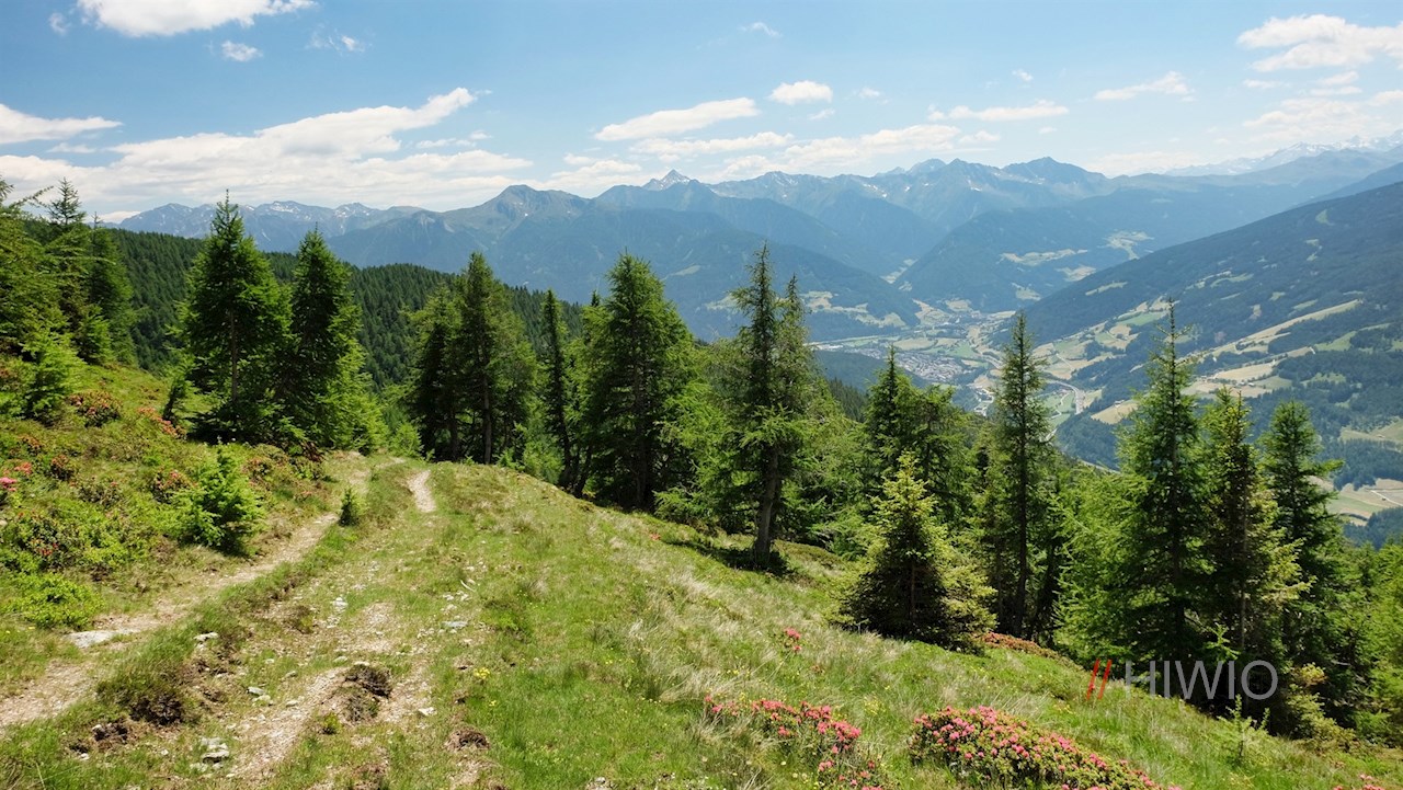 Oben angekommen, erschließen sich traumverlorene Ausblicke auf den Sterzinger Talkessel, die Stubaier und die Zillertaler Alpen.
