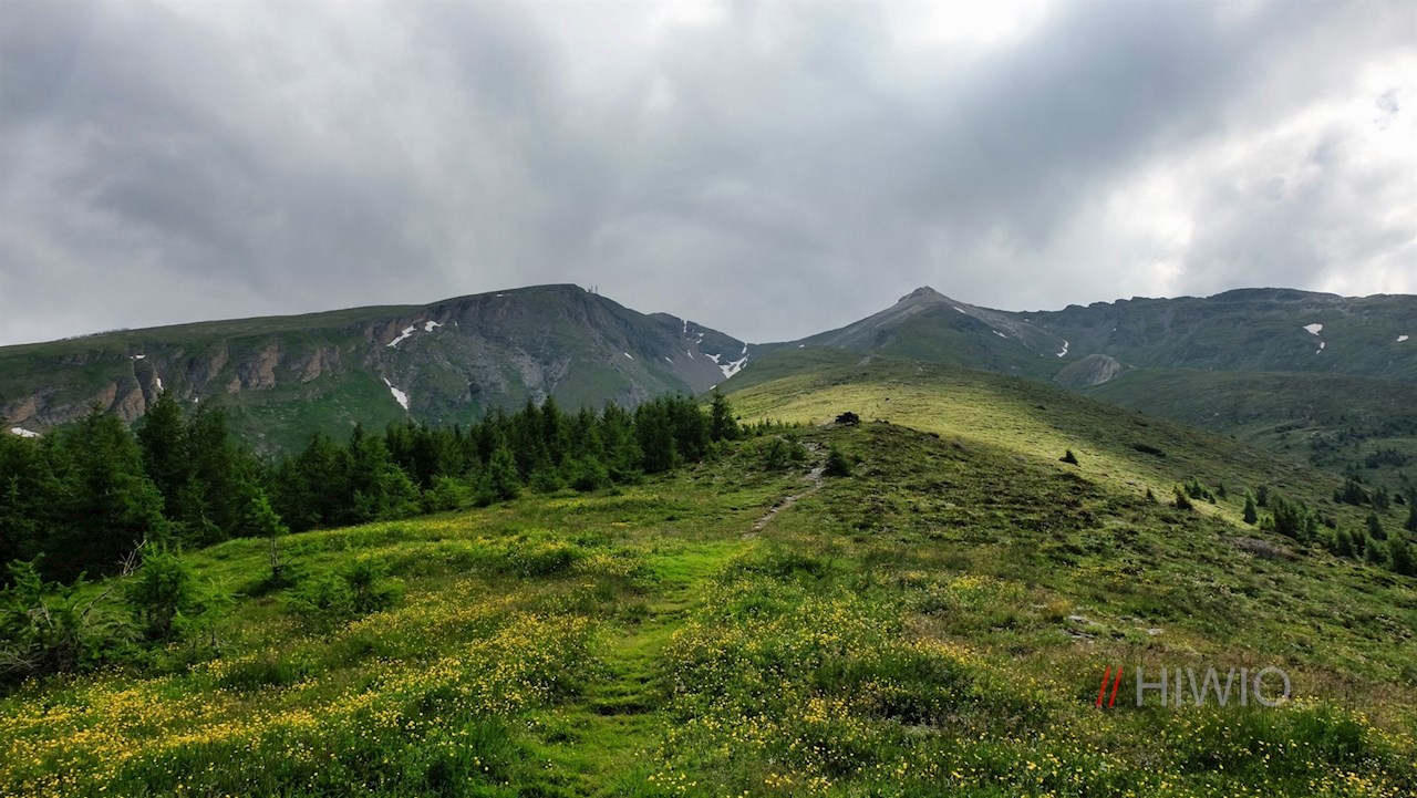 Auf dem Rückweg wandert man zunächst wieder über die Amthorspitze (Hühnerspiel) zum letzten Wegweiser zurück. Bei diesem folgt man diesmal aber dem Weg Nr. 22, der zunächst zu den Funktürmen und schließlich über naturbelassene Wiesenhänge zur Hühnerspielhütte hinabführt.
