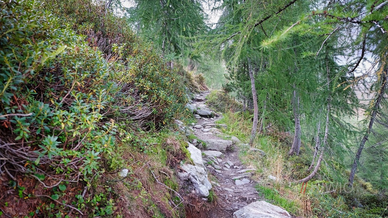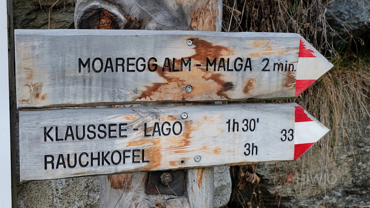 Oben angekommen, folgt man entweder dem breiten, gleichmäßig ansteigenden Wanderweg Nr. 33 oder dem etwas steileren Steig Nr. 33 in Richtung Klaussee - Rauchkofel. Beide führen an einladenden Almhütten vorbei und gehen schließlich ineinander über.