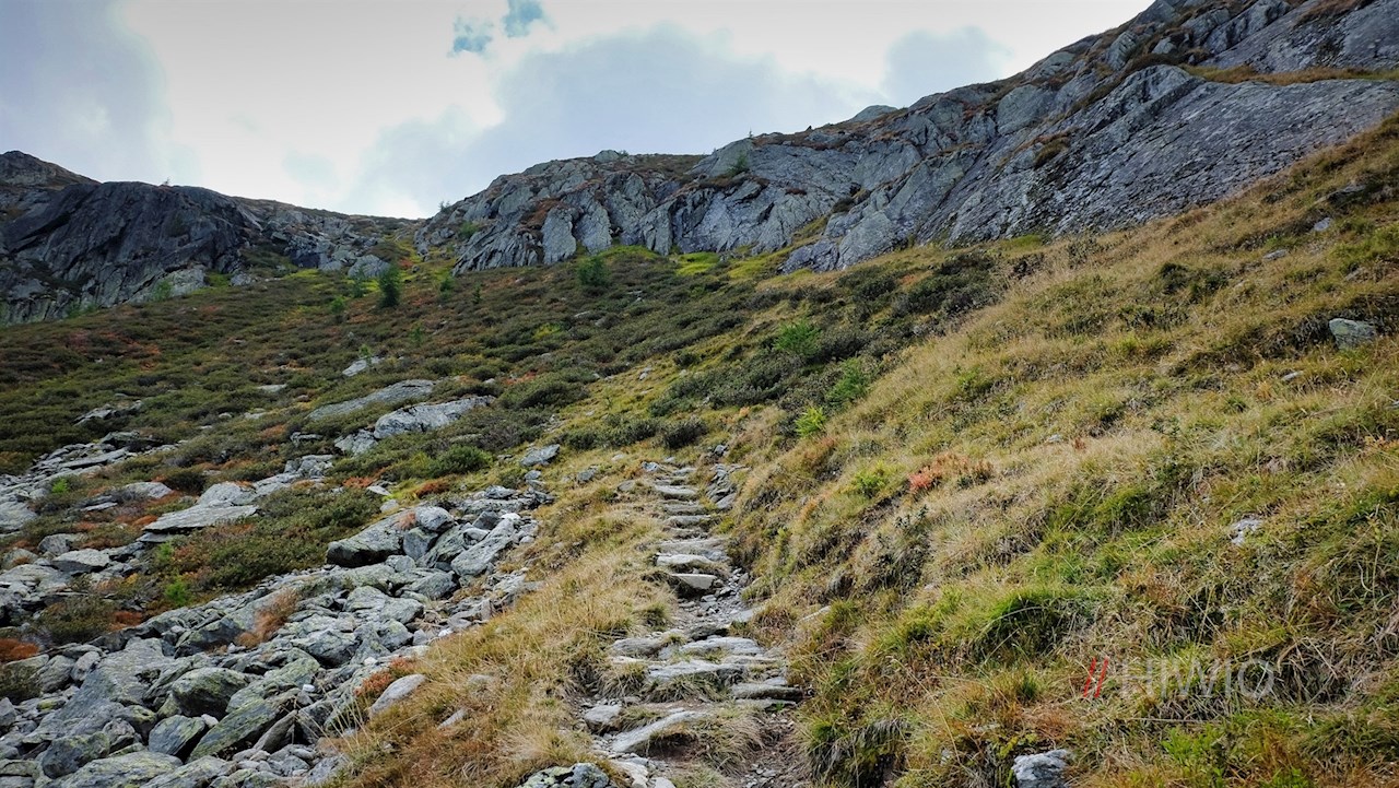 Weiterhin der Wegnummer 33 folgend, führt die Wanderung nun im großenteils steten Anstieg über Blockgestein zur Klausenscharte empor.