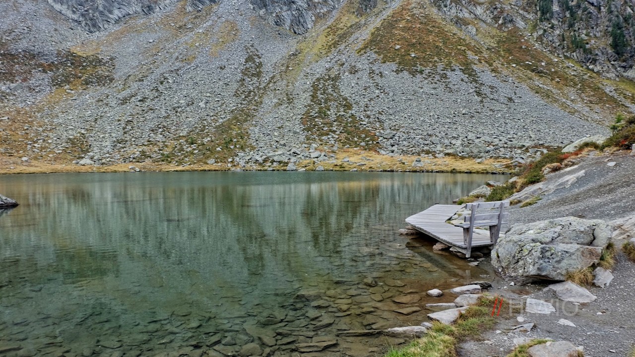 Nach etwa eineinhalb Stunden steten Wanderns erreicht man den schimmernden Klaussee zu Füßen des imposanten Rauchkofel mit dem in der Sonne glitzernden Gipfelkreuz. Nicht minder beeindruckend ist der freie Blick auf die gegenüberliegenden, teils vergletscherten Zillertaler Alpen.