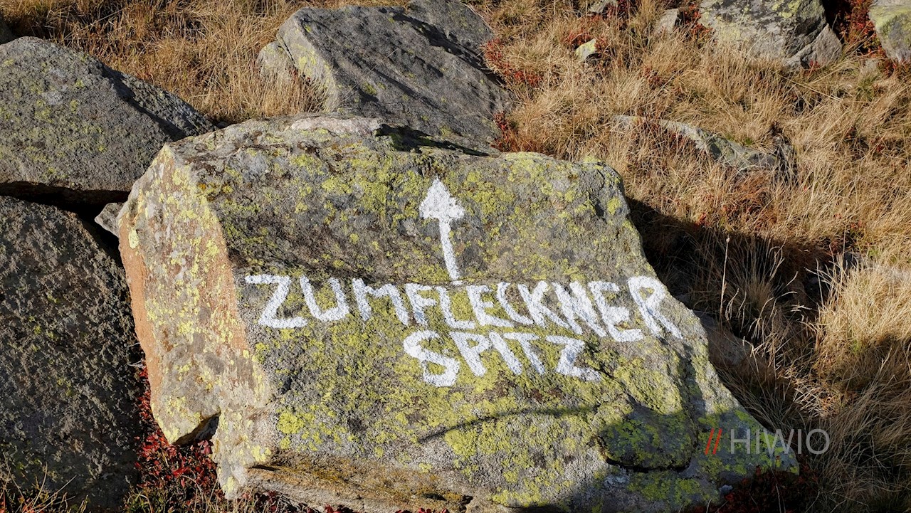 Vom aussichtsreichen Gipfel steigt man in eine Kammsenke ab, um sodann die mit 2.331 m Höhe leicht höhere Flecknerspitze zu erklimmen.