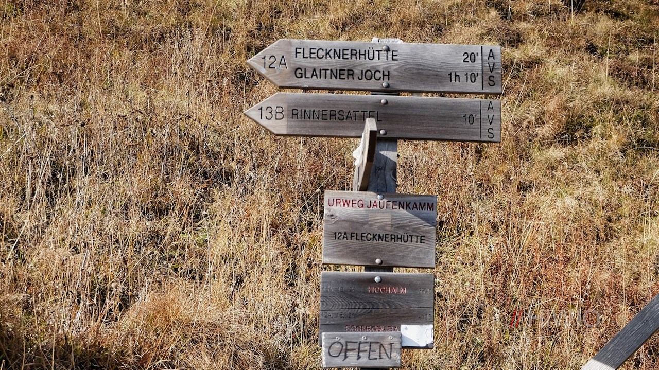 Dort schlägt man den sanften Panoramaweg Nr. 12A ein, der auch unter dem Namen „Urweg Jaufensenke“ bekannt ist. Er führt zu Füßen des Fleckners und des Fasnachters zur bewirtschafteten Flecknerhütte hinab, die auf 2.060 m Höhe zur gemütlichen Einkehr einlädt.