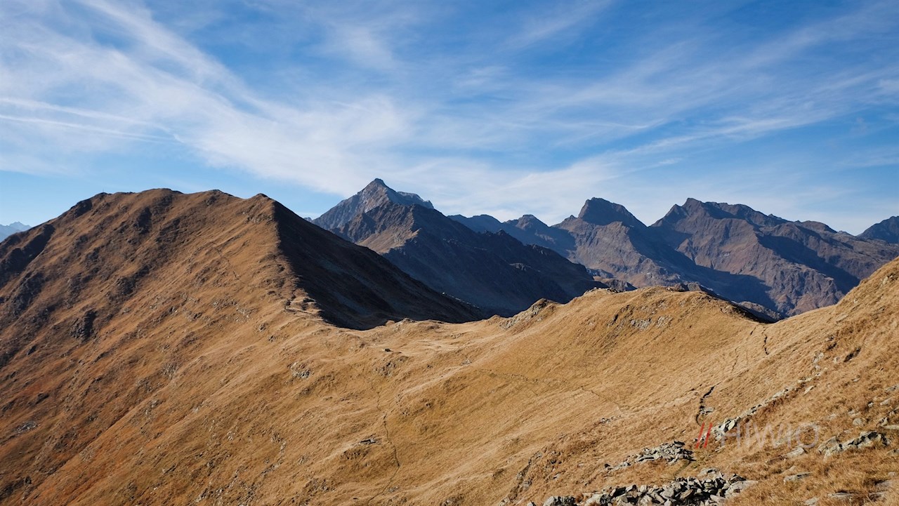 Nach der wohlverdienten Gipfelrast mit traumverlorener Panoramasicht auf die umliegende Bergwelt und das Passeiertal wandert man über den Saxner auf das Glaitner Joch weiter.