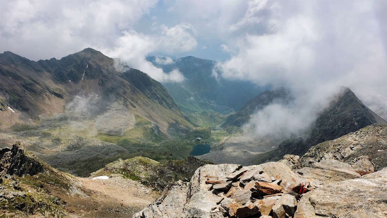Neben dem Gipfelkreuz der Hochgrubbachspitze, das auf einem Steinmännchen auf 2.809 m Höhe thront, erwartet den Wanderer schließlich ein traumhafter Ausblick. Insbesondere die abgeschiedenen Pfunderer Berge und die höchsten Gipfel der Zillertaler Alpen stechen ins Auge. Zu unseren Füßen schimmern indes der kleine Goldsee und der etwas größere Passensee.