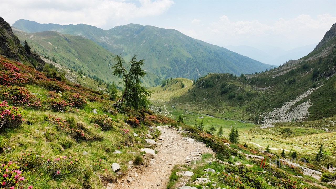 Hinter der beliebten Almhütte wird er allmählich steiler und geht später in einen schmalen Pfad über. Dieser schlängelt sich entlang des leise rauschenden Winnebachs durch blumenfrohe Almwiesen zum kleinen Tiefrastenhüttl empor.