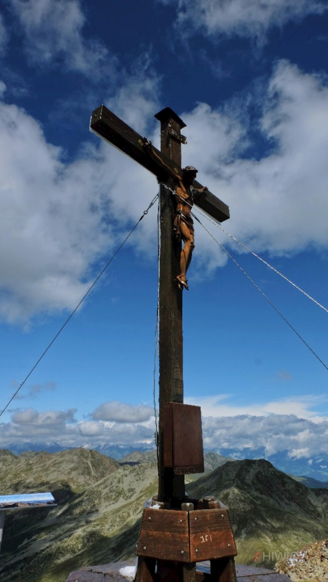 Hinter dieser einladenden Almhütte gestaltet er sich allmählich steiler und mündet schließlich in einen bisweilen recht steil ansteigenden, mit 15 Stationen geschmückten Kreuzweg. Auf diesem gelangt man zur Wallfahrtskirche Latzfonser Kreuz und zum gleichnamigen Schutzhaus, bei dem der Wanderweg Nr. 9 abzweigt.