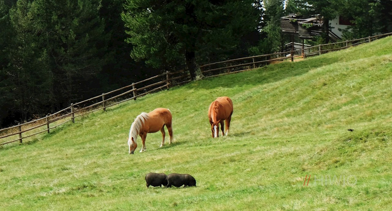 Der Beschilderung Nr. 1 in Richtung Latzfonser Kreuz folgend, führt der breite Weg zunächst im gemächlichen Anstieg durch Wald und Almwiesen zur Klausner Hütte.