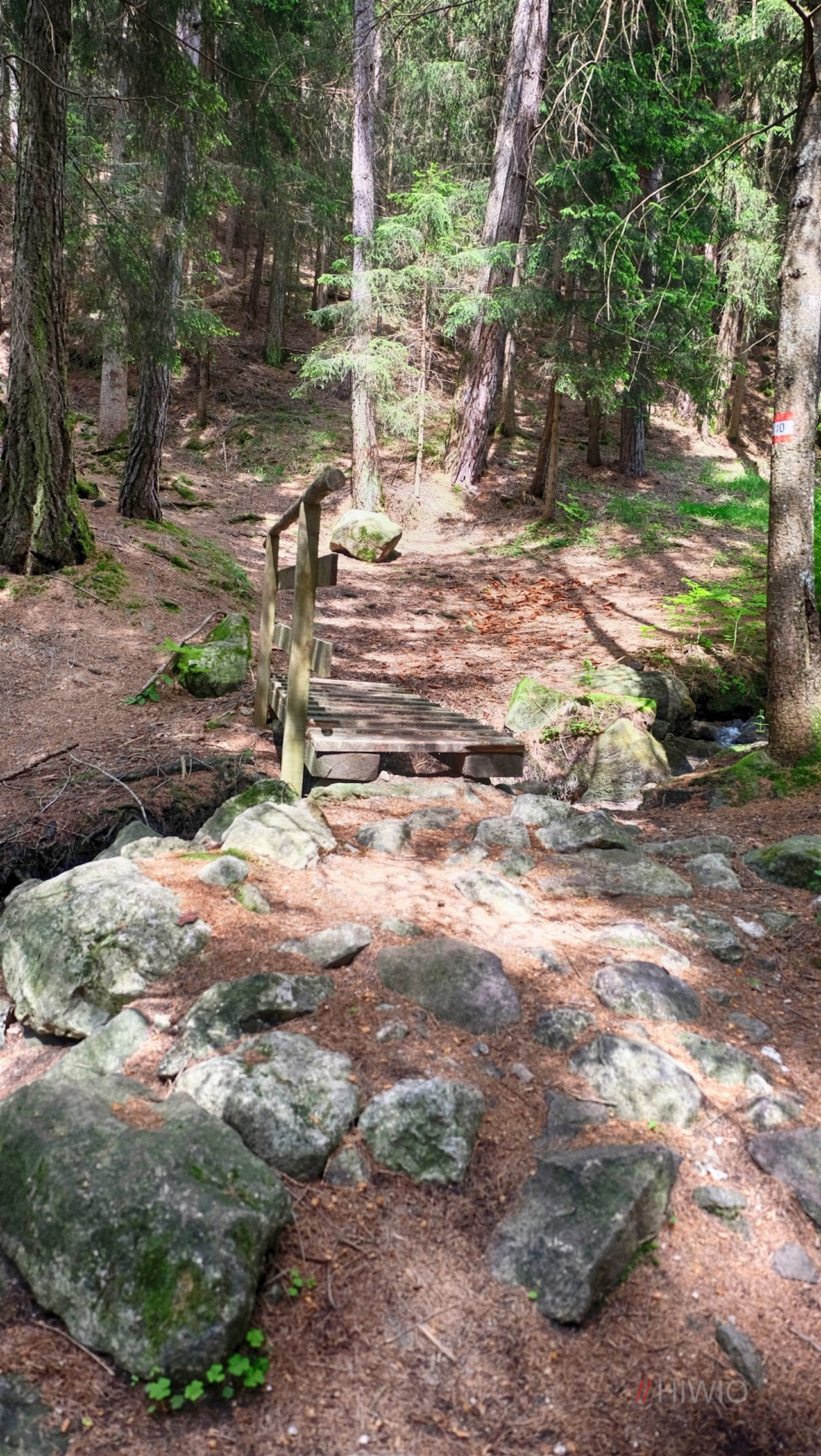 Von der kleinen Almhütte schlägt man den Waldweg Nr. 8 ein. Er führt zu den geheimnisumwitterten Hexenstühlen hinab, um die sich so manche Sage rankt. So sollen sich einst auf den zwei sesselförmigen Steinblöcken die hiesigen Hexen versammelt haben. Heute zählen die seltsam anmutenden Steinformationen zu einem der 38 Naturdenkmäler der Umgebung.