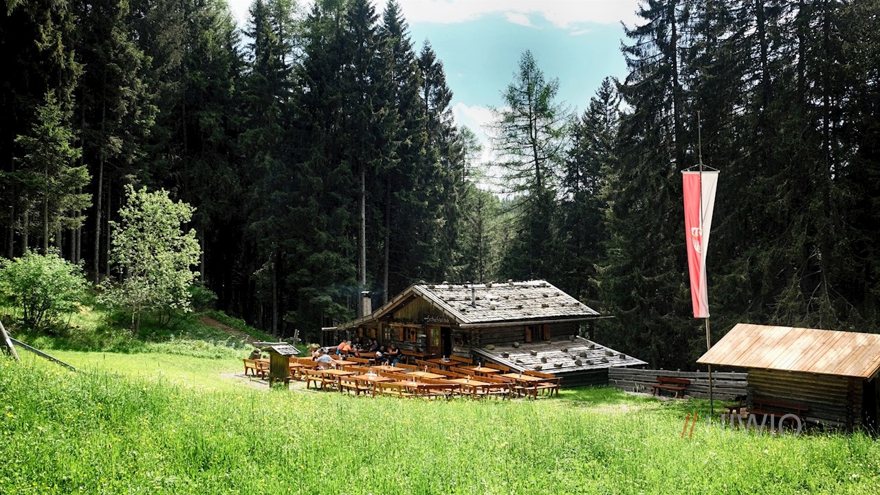 Nach gut einer Stunde erreicht man diesen beschaulichen Weiler, der an der Grenze zwischen dem deutschen und dem ladinischen Sprachraum liegt.