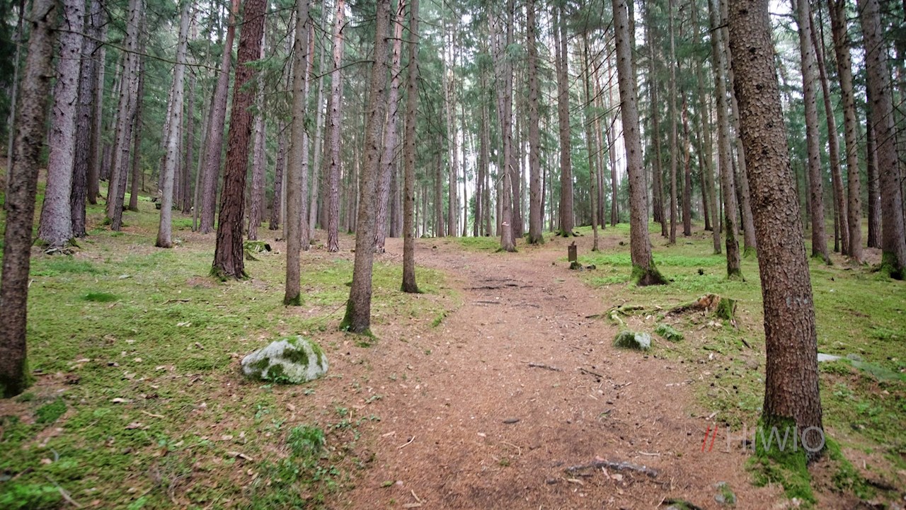 Hinter dem "Waldrastplatz" zweigt der ebenfalls mit der Nr. 17 markierte Waldweg nach Terenten ab. Hier verlässt man den Elfenweg und wandert in angenehmer Steigung durch das friedvolle Gehölz.