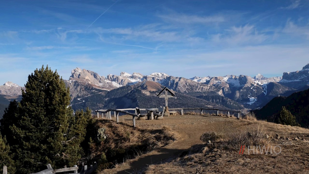 Hinter dem Bergrestaurant auf 2.100 m Höhe wandert man teils eben, teils im leichten Anstieg durch sanfte Bergwiesen zum Fillner Kreuz, dem östlichsten Aussichtspunkt des Puflatsch. Hier liegt einem das Grödnertal wortwörtlich zu Füßen.