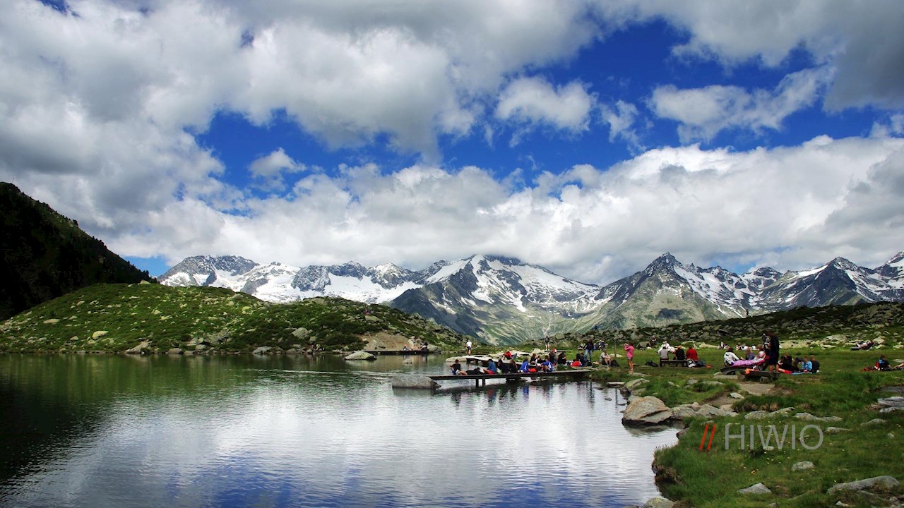 Nach insgesamt etwa eineinhalb Stunden erreicht man den glitzernden Bergsee zu Füßen der Durreckgruppe, dessen Ufer zahlreiche Sitz- und Liegemöglichkeiten bereithält. Einzigartig ist auch der freie Blick auf die gegenüberliegenden Zillertaler Alpen.