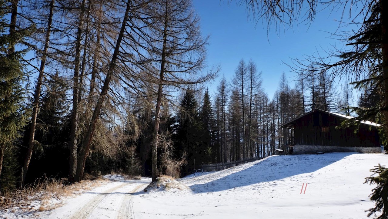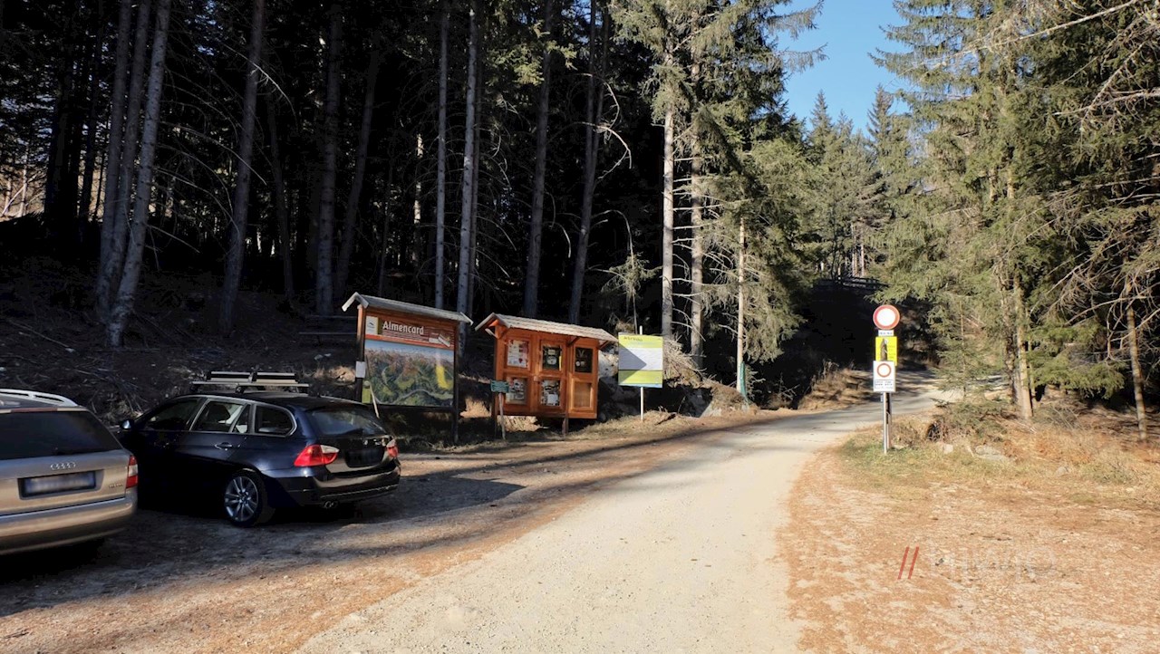 Die Wanderung zur Anratterhütte beginnt am Parkplatz Bild-Wetterkreuz oberhalb des Dorfes Spinges, den man über die „Bergstraße“ nahe der Dorfeinfahrt anfährt.