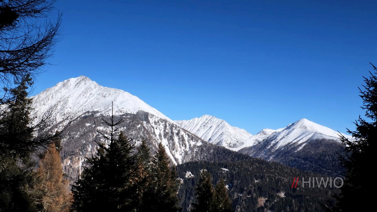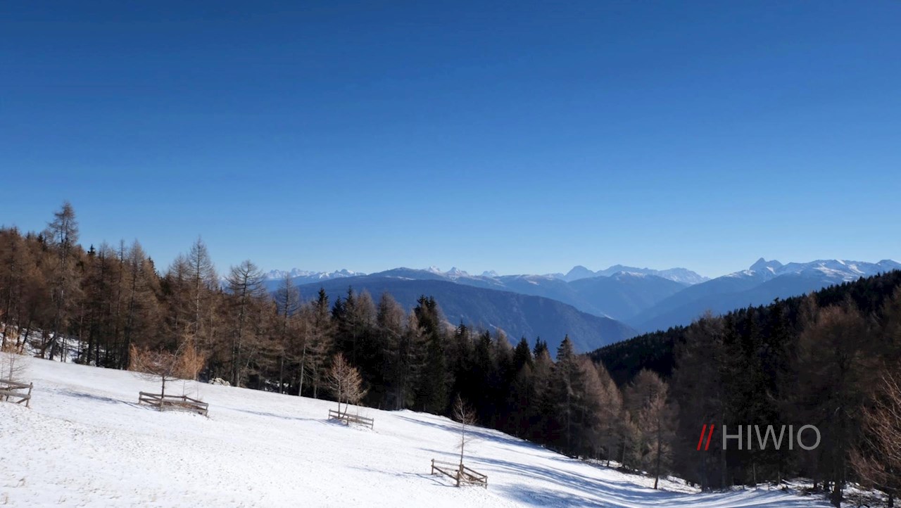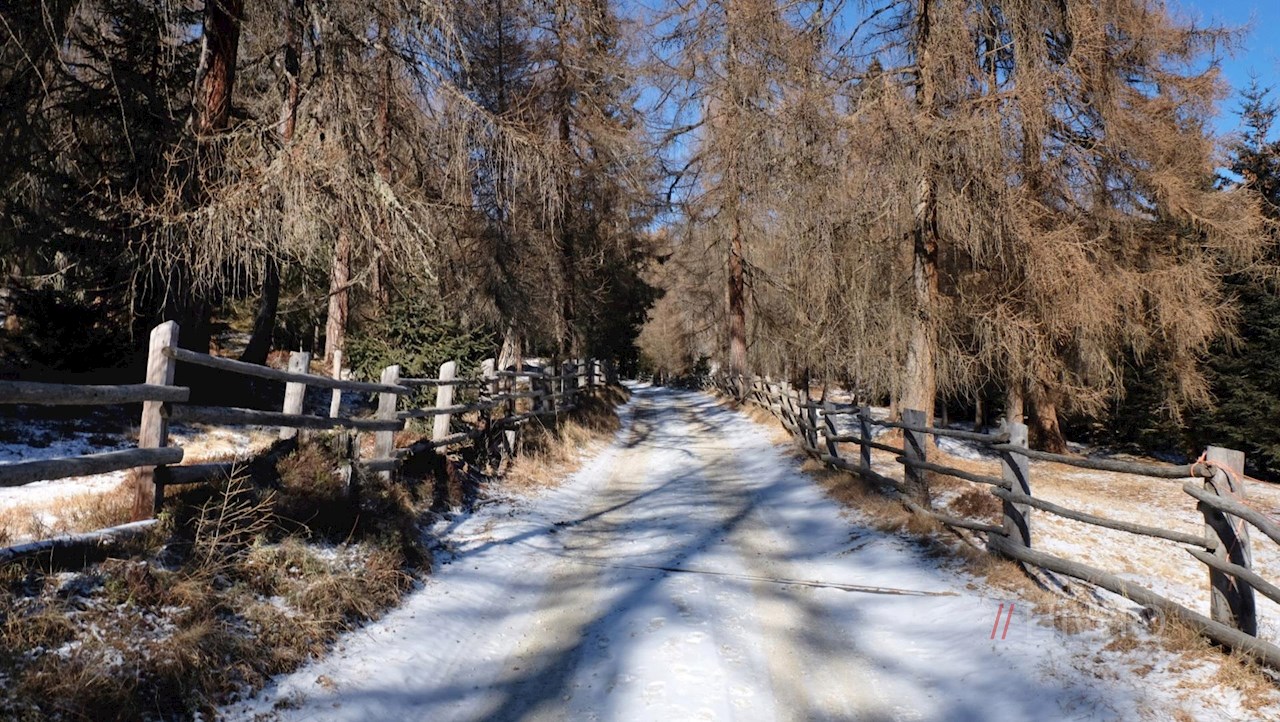 Stets der Markierung 9 folgend, führt ein breiter, gemächlich ansteigender Forstweg durch Wald und Lärchenwiesen, die immer wieder Blicke auf die Pfunderer Bergwelt freigeben.