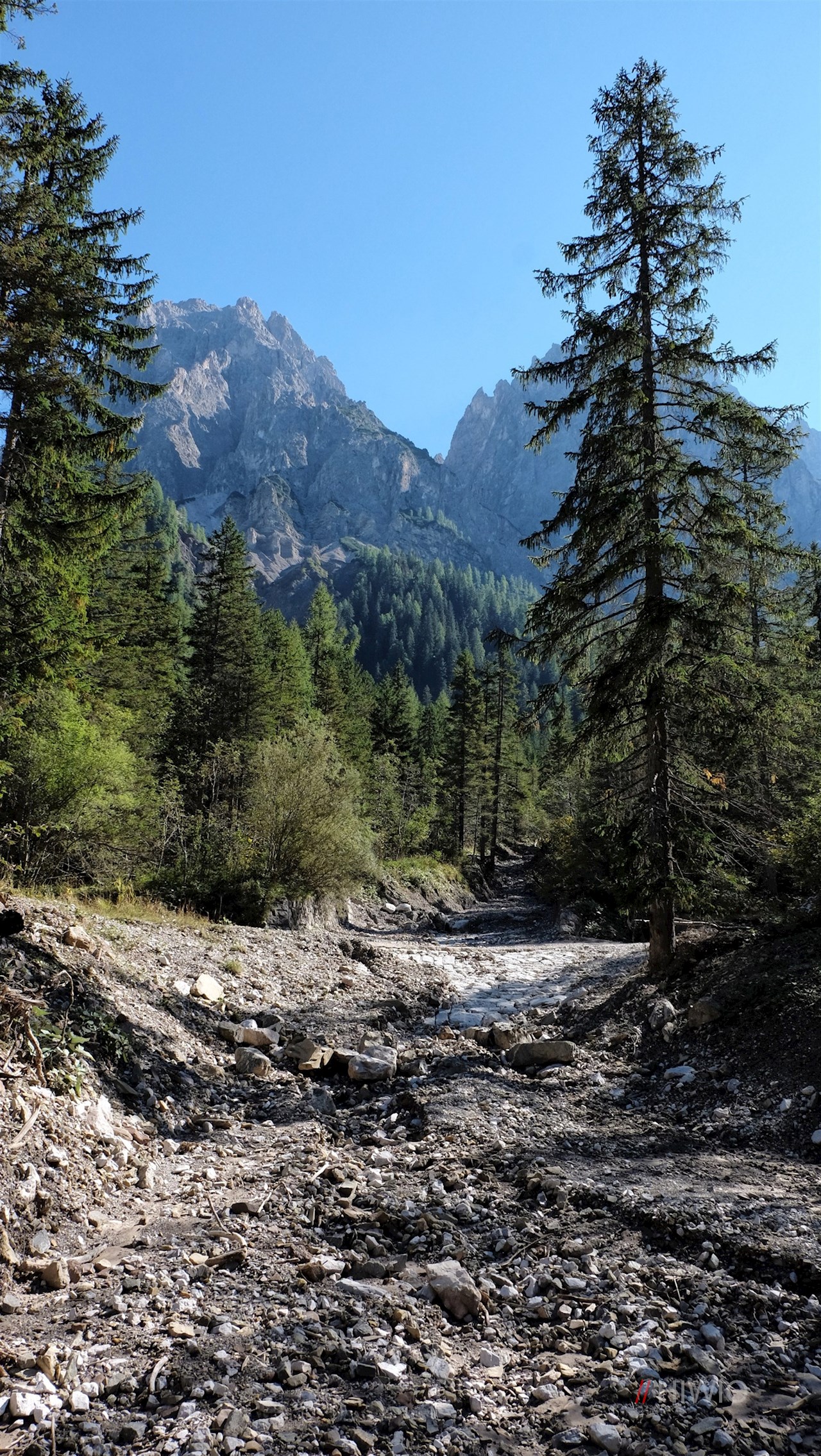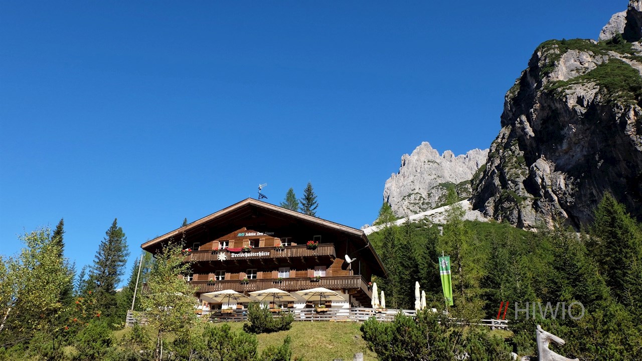 Am nächsten Parkplatz folgt man der Markierung Nr. 105. Teils auf Wald-, teils auf Schotterwegen gelangt man so zur gemütlichen Dreischusterhütte auf 1.626 m Höhe. Diese gemütliche Hütte am Innerfeld ist Ausgangspunkt für zahlreiche Wander- und Klettertouren.