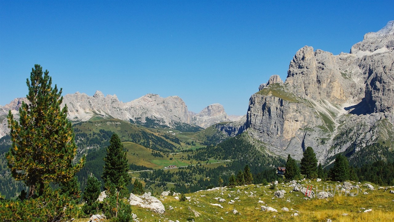 Die gemütliche Wanderung zur Steinernen Stadt und zur Emilio Comici Hütte nimmt auf einem der zahlreichen Parkplätze am Sellajoch ihren Anfang.