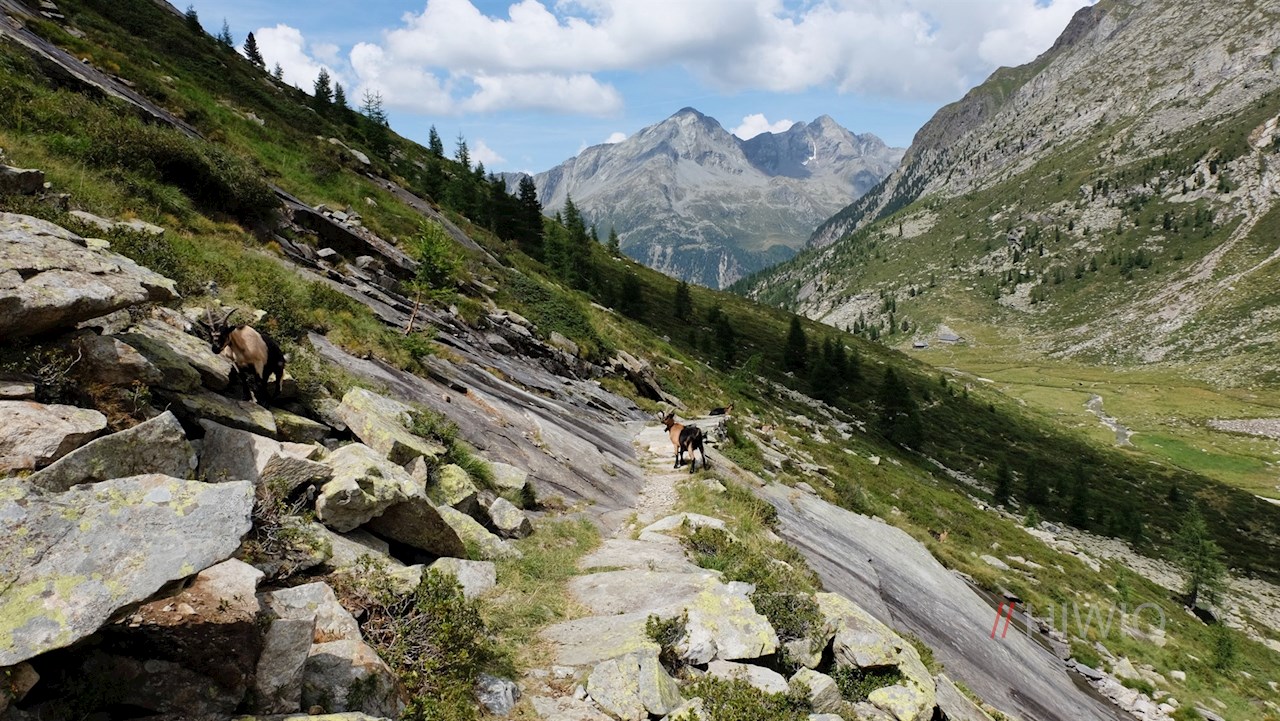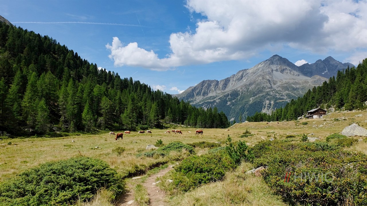 Dahinter steigt der schmale Pfad zunächst sanft, dann stetig durch steinbeschlagene Weidehänge, geröllbeladenes Blockwerk und Felsgelände in Richtung Rieserfernerhütte an.