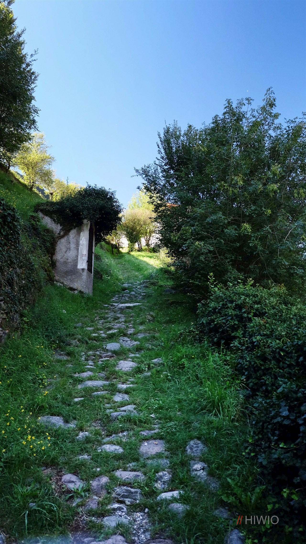 Diese kurze Wanderung nimmt am Dorfplatz in der Nähe des Bahnhofs ihren Anfang. Hier weist ein Schild die Richtung zum ostseitig aufsteigenden Trostburgweg.