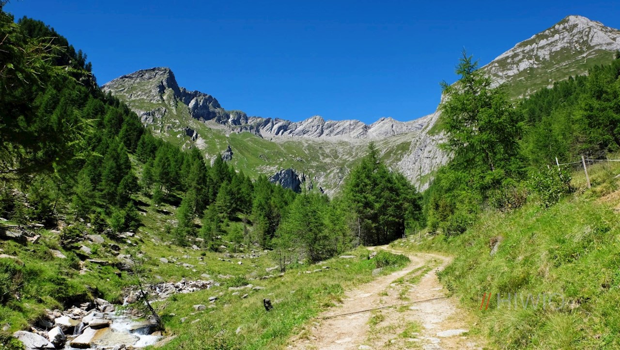 Er führt im mitunter ziemlich steilen Anstieg durch die nahezu unberührten Almwiesen des Eisbruggtals zur Eisbruggalm und von dort weiter zum malerisch schimmernden Eisbruggsee.