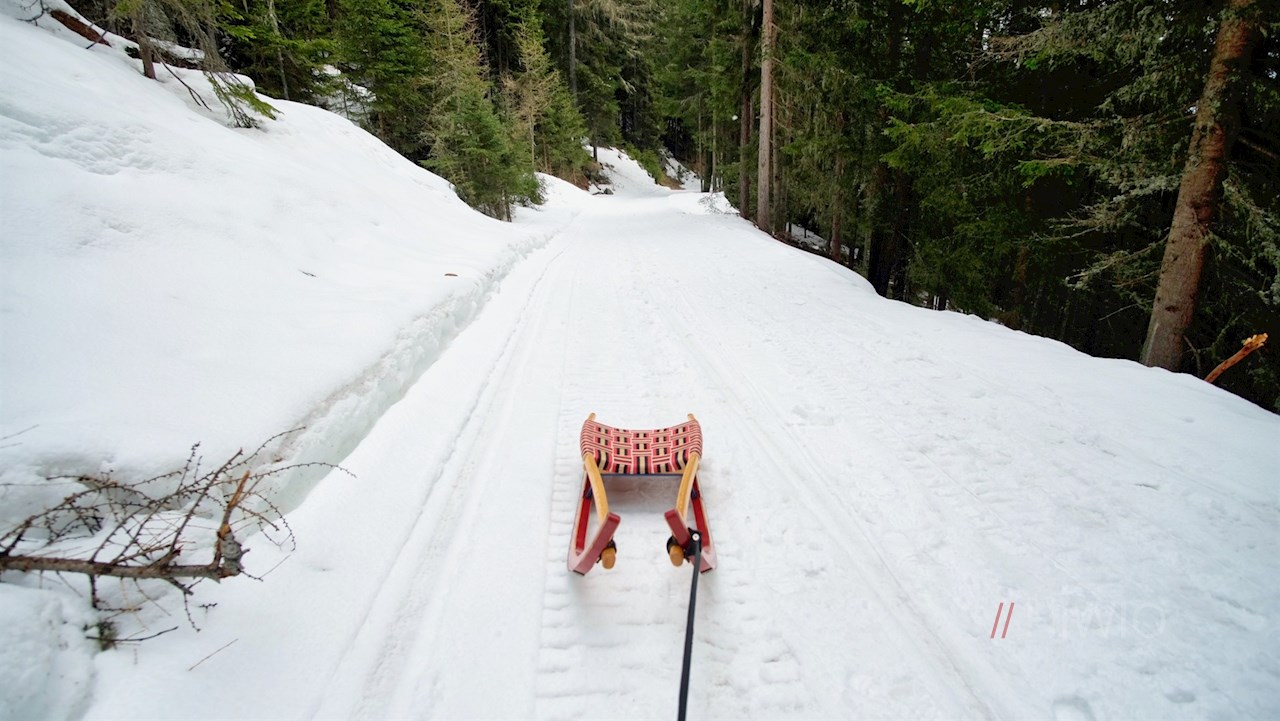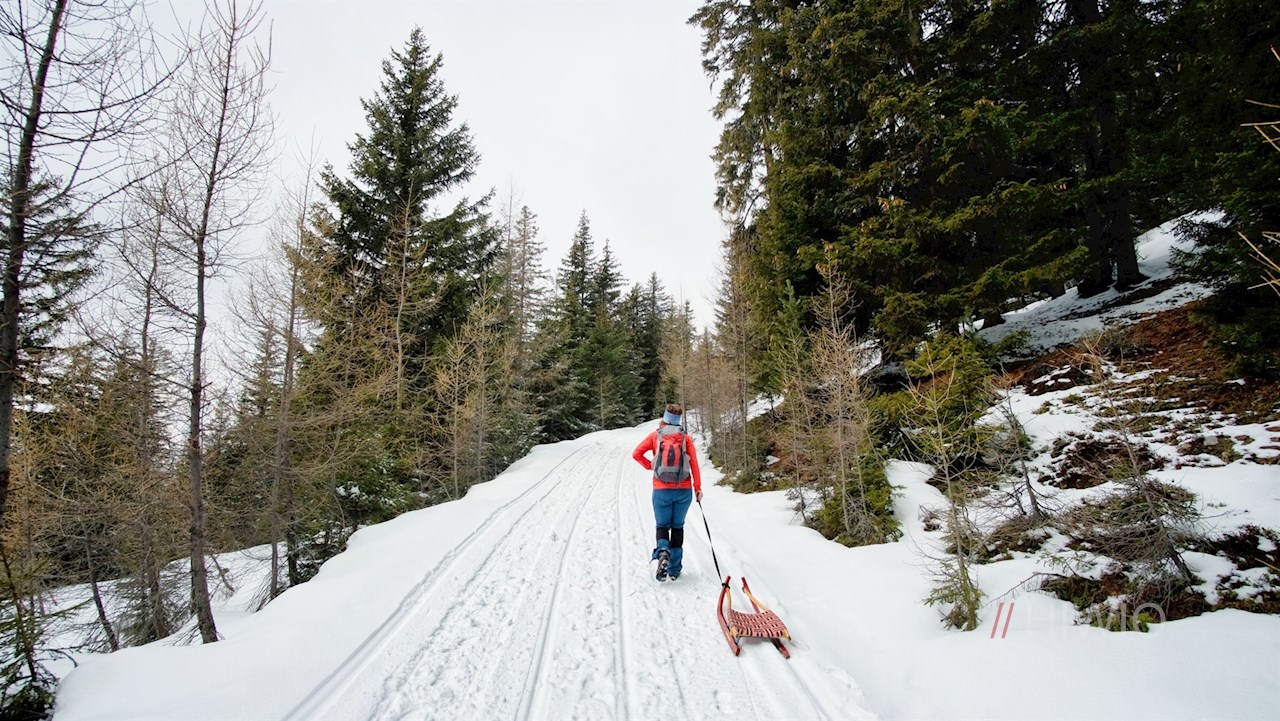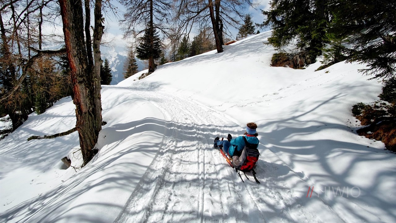 Der Rückweg von der Weizgruberalm erfolgt auf dem Hinweg. Er wird im Winter gerne mit der Rodel angetreten.