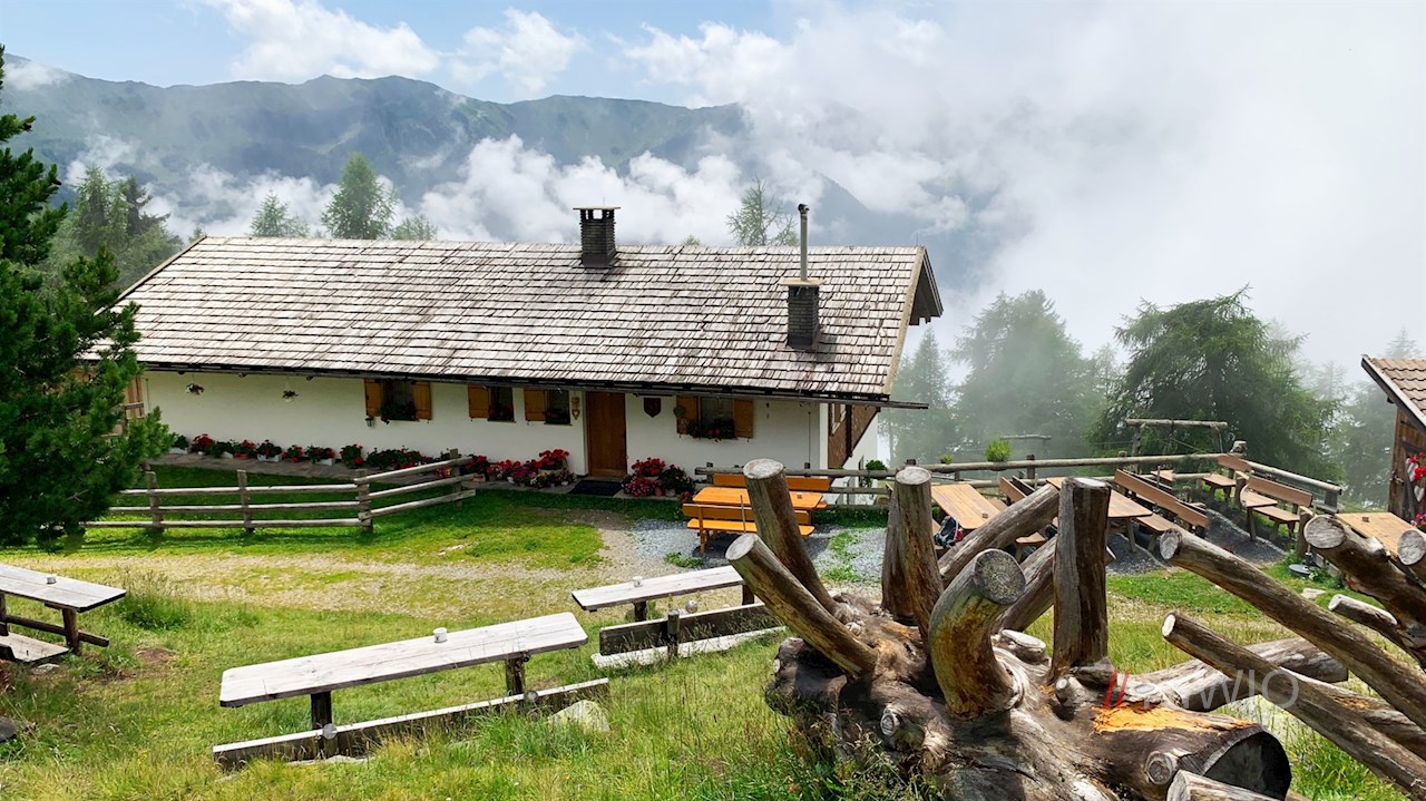 Die Weizgruberalm in Mühlwald verheißt Genuss und Gemütlichkeit vor verträumter Bergkulisse. Zu dieser liebevoll geführten Almhütte führt eine kurze Wanderung durch Wald und Wiesen.