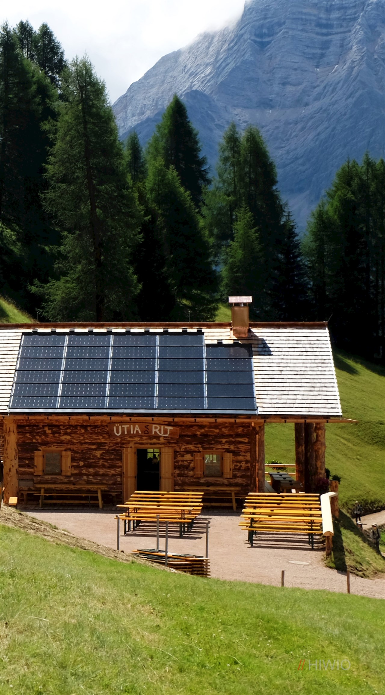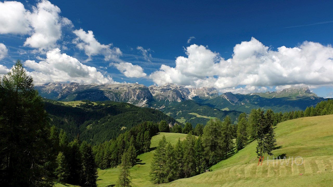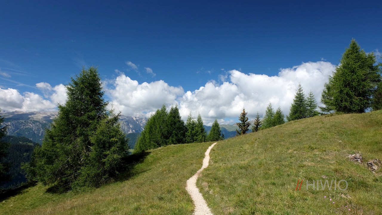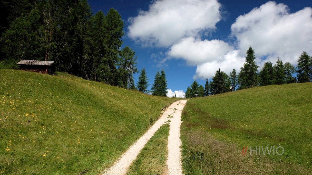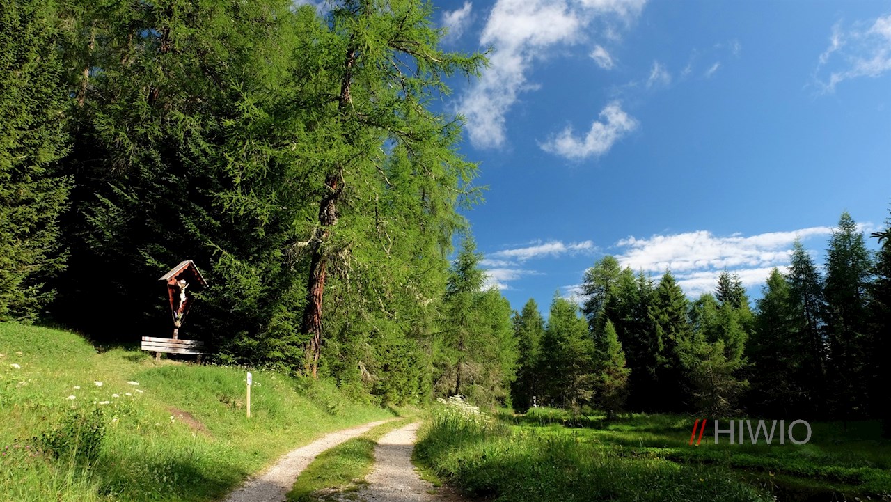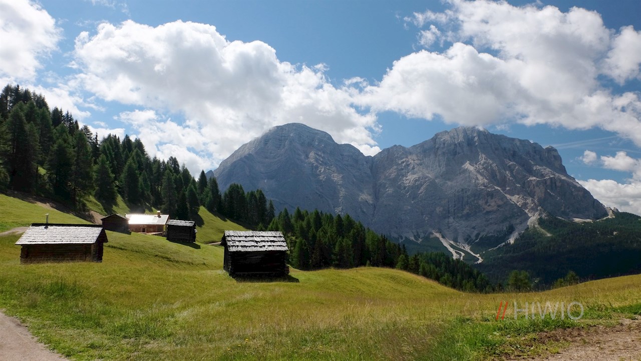 Von der idyllisch gelegenen Almhütte folgt man nacheinander den Wegen 16 und 15 und gelangt so zum Ausgangspunkt zurück. Unterwegs öffnen sich schöne Ausblicke auf die imposanten Felswände des nahen Heiligkreuzkofel.