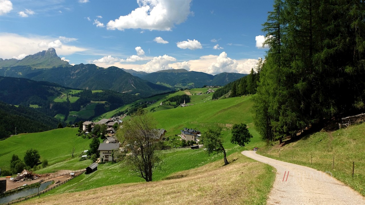 Die Kreuzspitze / Crusc da Rit erhebt sich hinter dem beschaulichen Gadertaler Dorf Wengen. Auf diesen aussichtsreichen Gipfel in den Dolomiten führt eine schöne Wanderung.