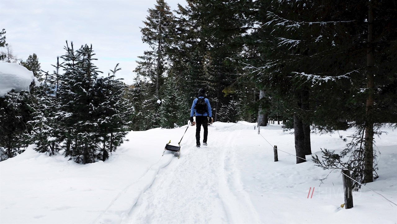 Die Rodelwanderung zur Rinderplatz Hütte nimmt auf dem großen Wanderparkplatz Saltnerstein am Rande der Villanderer Alm ihren Anfang.