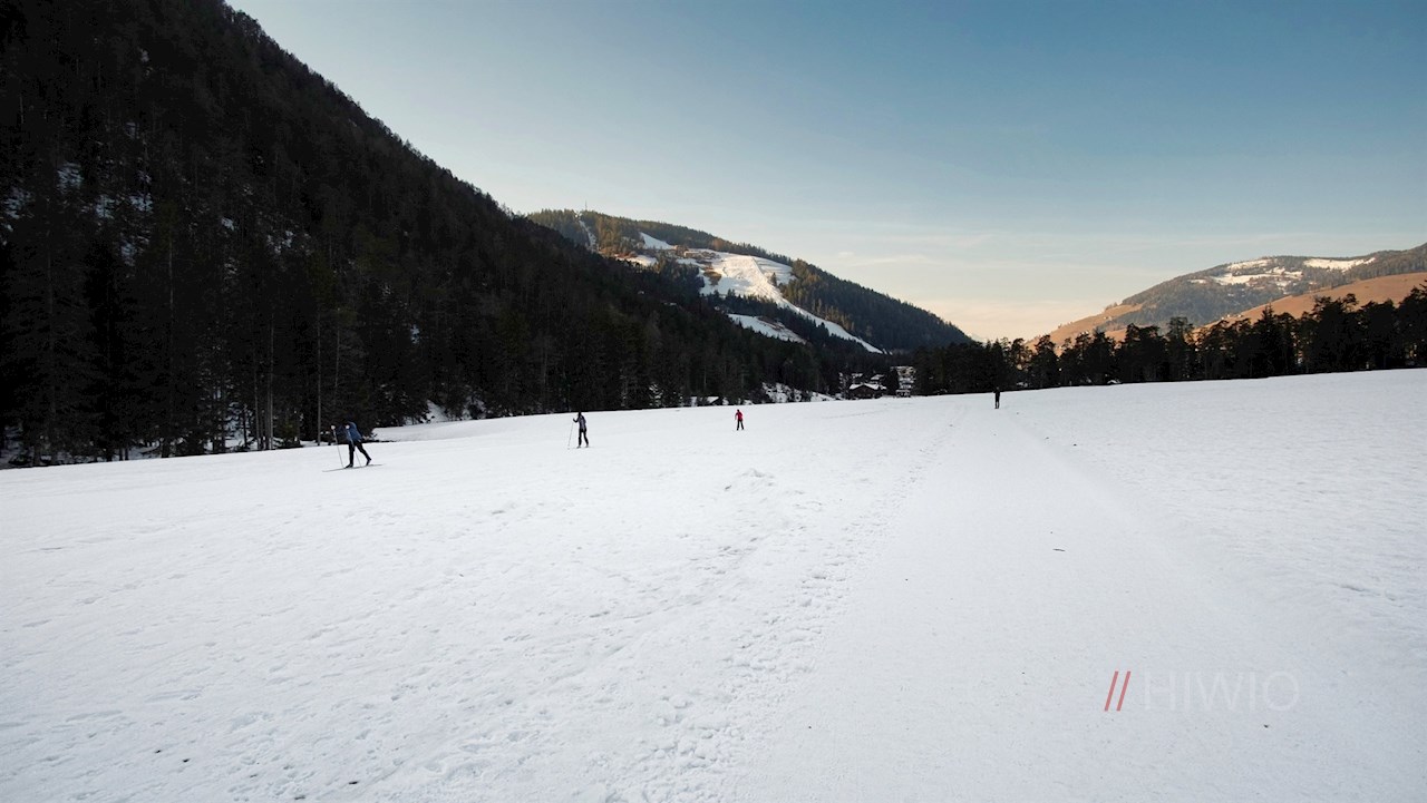 Diese gemütliche Winterwanderung nimmt am südlichen Ortsrand des beschaulichen Gadertaler Dorfes St. Vigil in Enneberg ihren Ausgang. Links des Naturparkhauses zweigt ein gewalzter Winterwanderweg ab, der sich über den tiefverschneiten Talboden zieht. Da der Wanderweg parallel zur Langlaufloipe verläuft, zieht ab und an ein eleganter Wintersportler an uns vorbei.