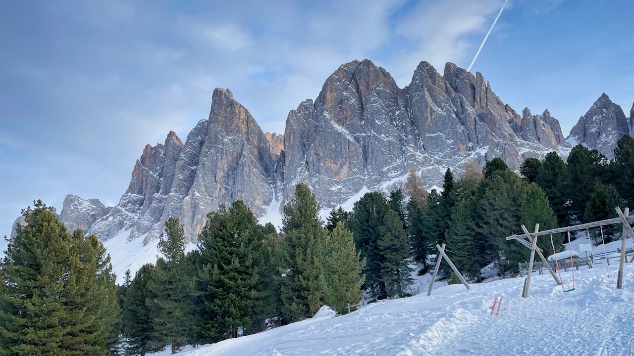 Im Winter führt der Adolf Munkel Weg durch die bezaubernde Schneelandschaft am Fuße der Geislerspitzen. Vor der Rückkehr nach Villnöss lädt die beliebte Geisleralm zur Einkehr.