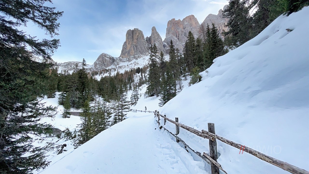 Die Winterwanderung auf dem Adolf Munkel Weg beginnt auf dem kostenpflichtigen Parkplatz Zans am Ende der Villnösser Bergstraße.