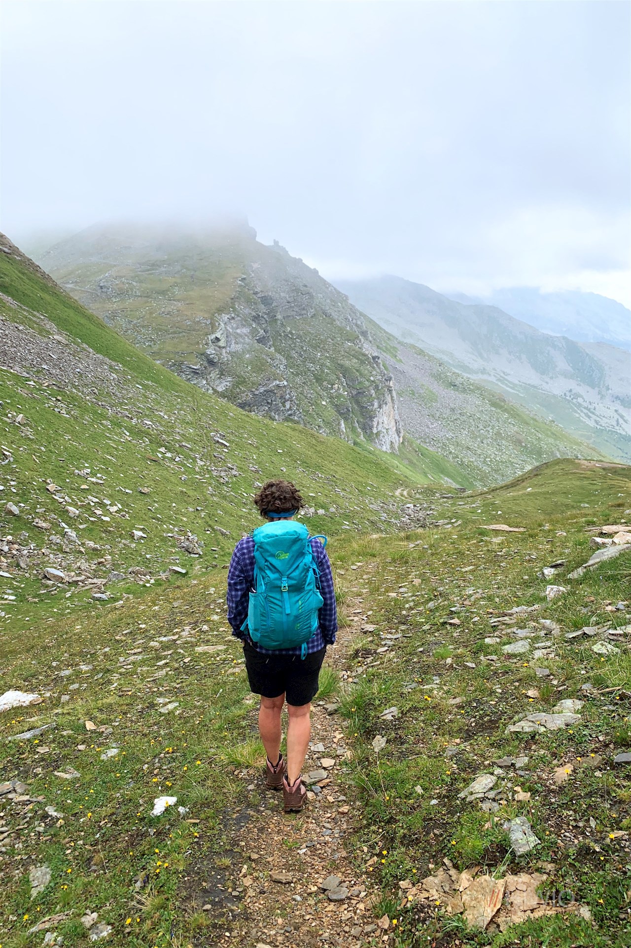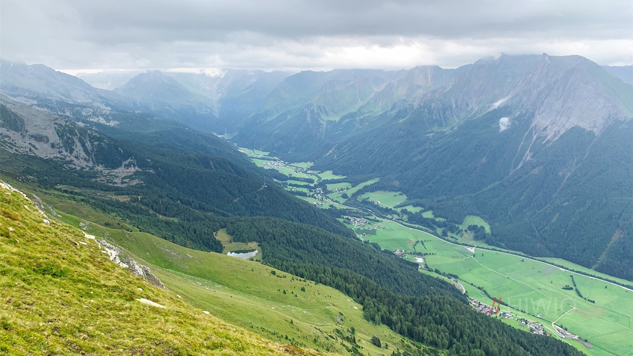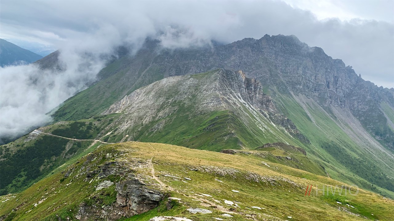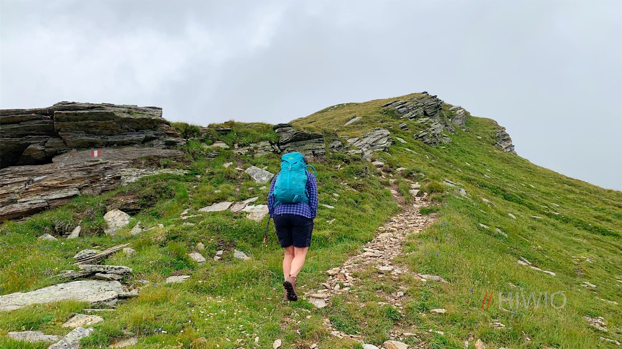 Er geht alsbald in einen schmalen Pfad über, der über den breiten, teils steinbeschlagenen Grasrücken auf die Flatschspitze ansteigt. Unterwegs gerät erstmals das langgezogene Pfitschtal in unser Blickfeld.