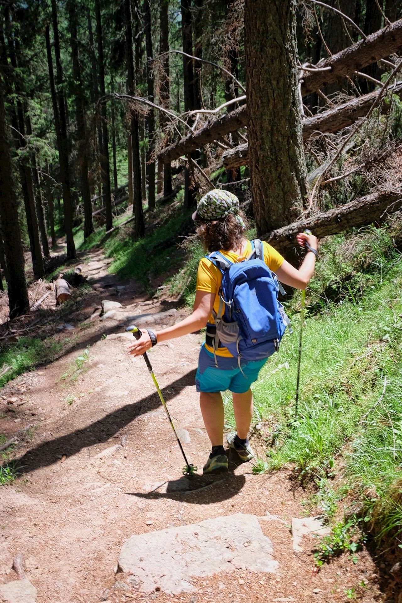 Der Abstieg vom Wolfskofel erfolgt auf dem Hinweg, auf dem man sich einen Abstecher zur nahen Rotbachalm nicht entgehen lassen sollte.