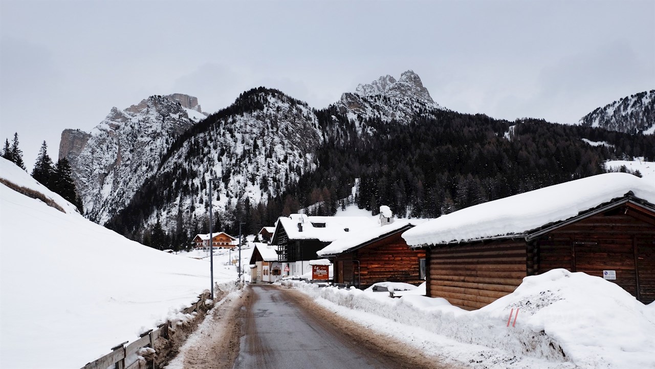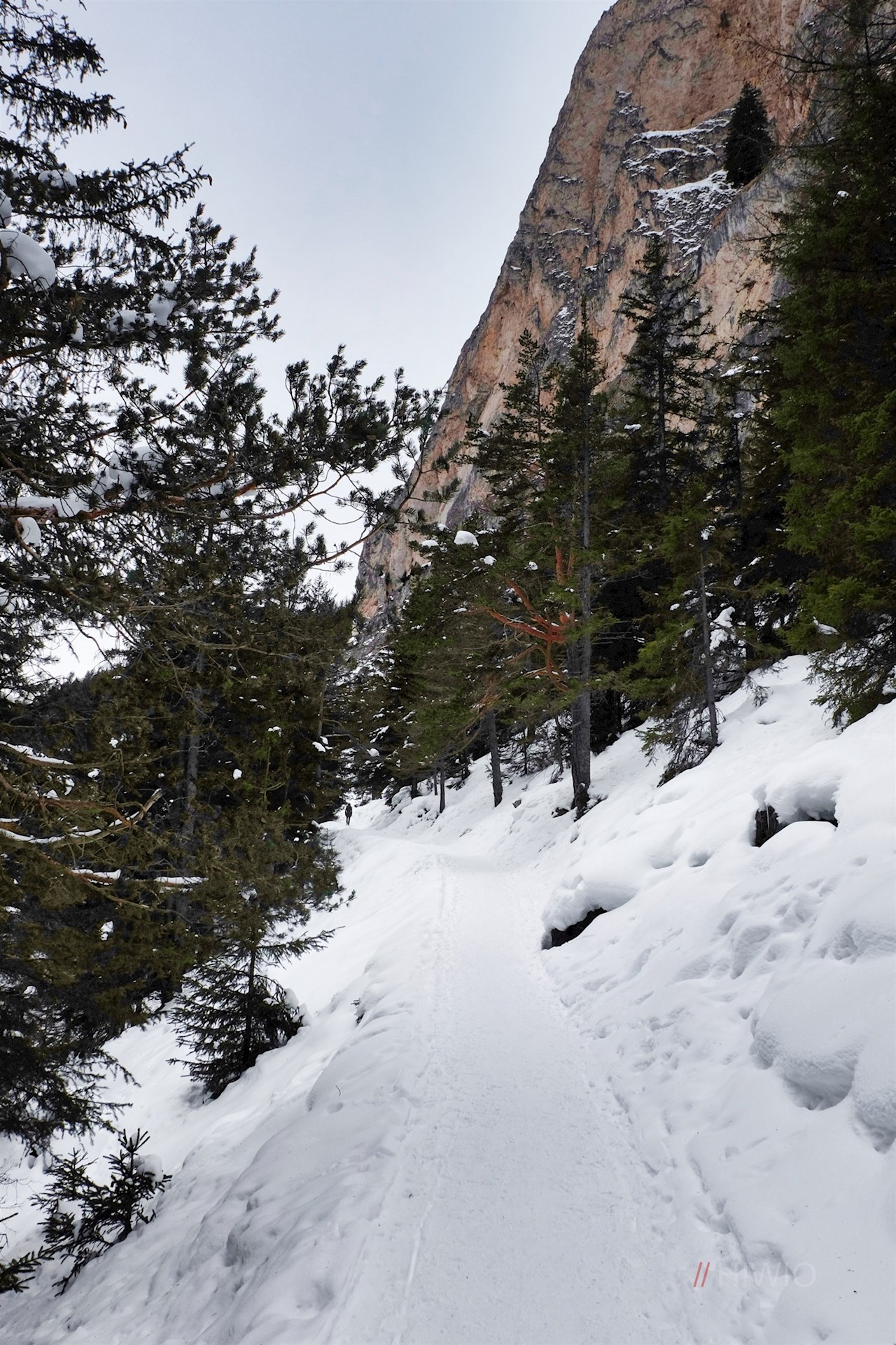 Leichte Winterwanderung vom Eingang des Langentals bei Wolkenstein in Gröden