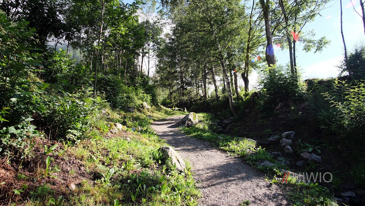 Der Beschilderung Nr. 5 in Richtung Wollbachalm folgend, wandert man zunächst eine Höfestraße hoch, von der wenig später der Steig Nr. 5 abzweigt. Er führt im steten Anstieg durch den Wald und geht dabei in die Wege 5a und 5c über. Da Teile des Weges dem Leonardiweg folgen, erhält man während des Wanderns einen kleinen Einblick in den bäuerlichen Lebensalltag früherer und modernerer Zeiten.