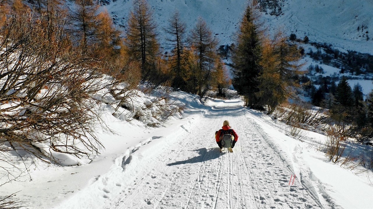 Der Rückweg von der Enzianhütte erfolgt auf dem Hinweg. Im Winter wird er gerne mit der Rodel zurückgelegt.