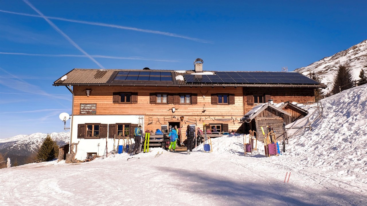Die Rodelbahn von der Enzianhütte in Zirog zählt zu den beliebtesten und längsten in und um Sterzing. In der Enzianhütte selbst werden die Wanderer auch im Winter mit lokalen Gaumenfreuden verwöhnt.
