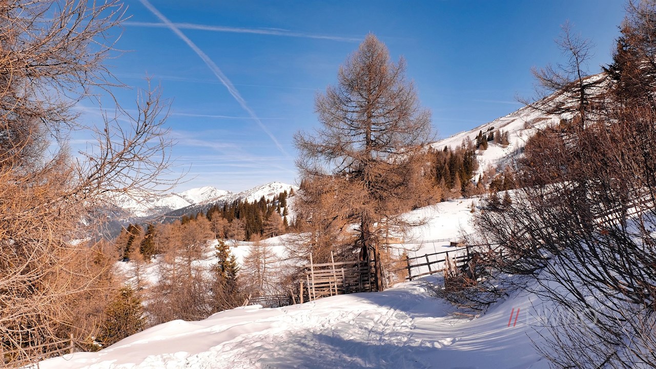 Hinter den urigen Almhütten schwenkt der Weg Nr. 11 aber zunächst in Richtung Dax- und Flatschspitze nach rechts ab und steigt zuletzt direkt zur gemütlichen Enzianhütte an. In der gemütlichen Almhütte erwarten den Wanderer auch im Winter kulinarische Genussmomente in gemütlicher Atmosphäre.