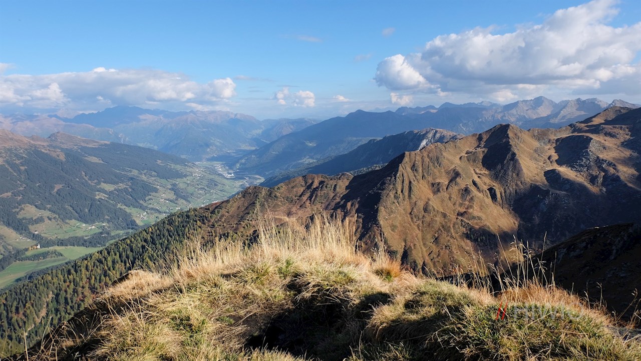 Der Abstieg von der Zunderspitze erfolgt zunächst auf dem Hinweg. Bei der Gewingesalm schlagen wir diesmal aber den Steig Nr. 29A ein, der recht steil über die von Zwergsträuchern bewachsenen Hänge zur idyllischen Martalm abfällt. Während des etwa halbstündigen Abstiegs öffnen sich atemberaubend schöne Ausblicke auf die anmutige Ridnauner Bergwelt.