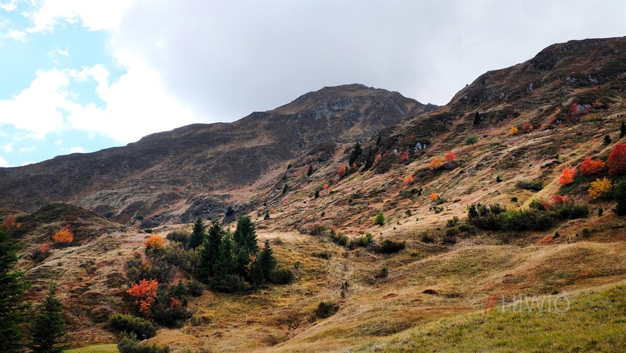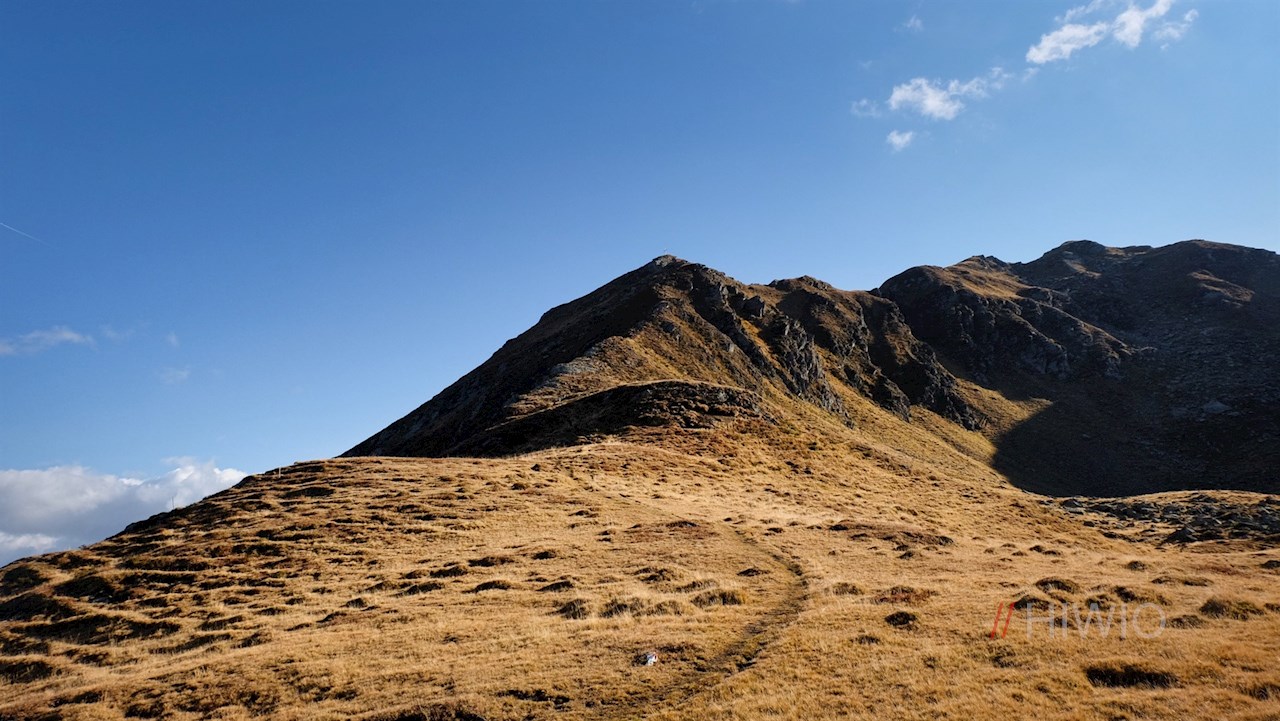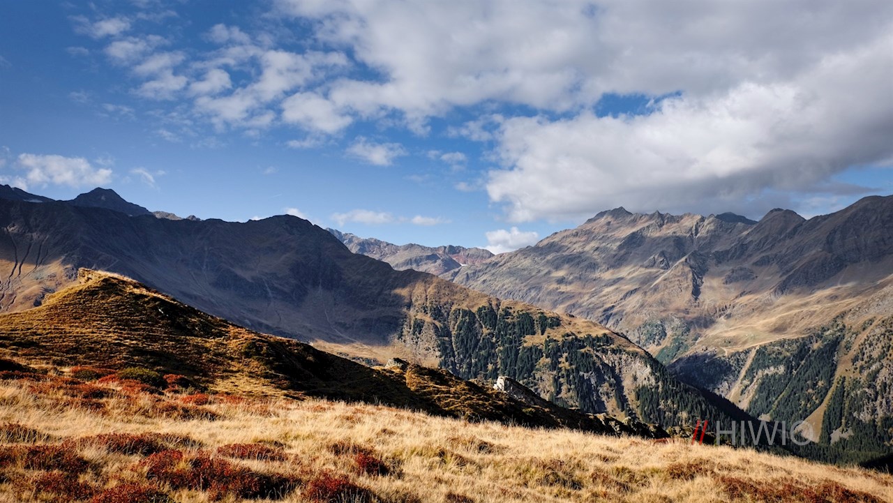 Am rechten Wegesrand zweigt wenig später der Steig Nr. 29 ab. Er zieht sich im nunmehr etwas steileren Anstieg zur oberen Waldgrenze hoch. Dahinter dehnen sich die sanft gewellten, von einzelnen Scheunen bestandenen Weidewiesen der Gewingesalm aus, die im bezaubernden Kontrast zu den ringsum aufragenden Ridnauner Bergspitzen stehen.