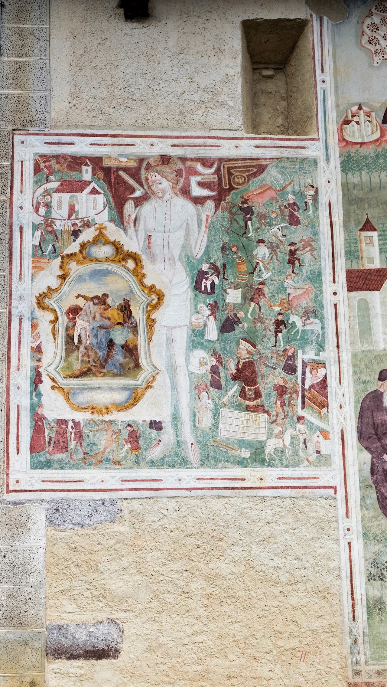 Die Wanderung zur St. Jakobskirche nimmt an der Pfarrkirche des idyllisch gelegenen Dorfes St. Ulrich ihren Anfang. Hier schlägt man den asphaltierten Weg Nr. 4 in Richtung „St. Jakob“ ein.