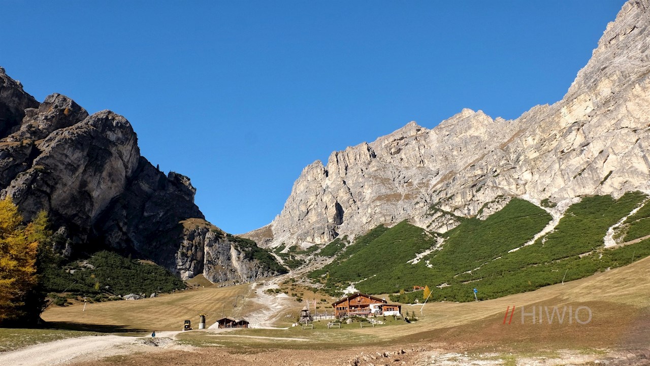 Hier schlägt man den breiten Weg Nr. 4 ein, der im sanften Anstieg zur beliebten Edelweißhütte am Fuße des frei aufragenden Sassongher führt.